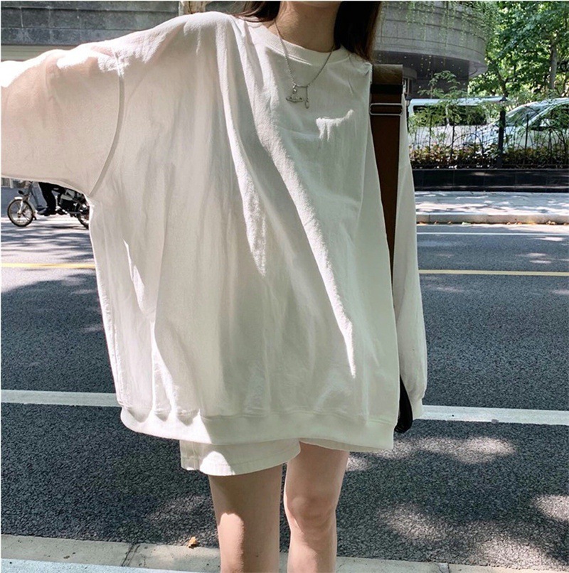 トレーナー スウェット レディース パーカー Tシャツ プルオーバー トップス 長袖 体型カバー 春 秋 クルーネック シンプル 無地