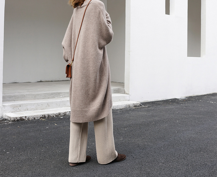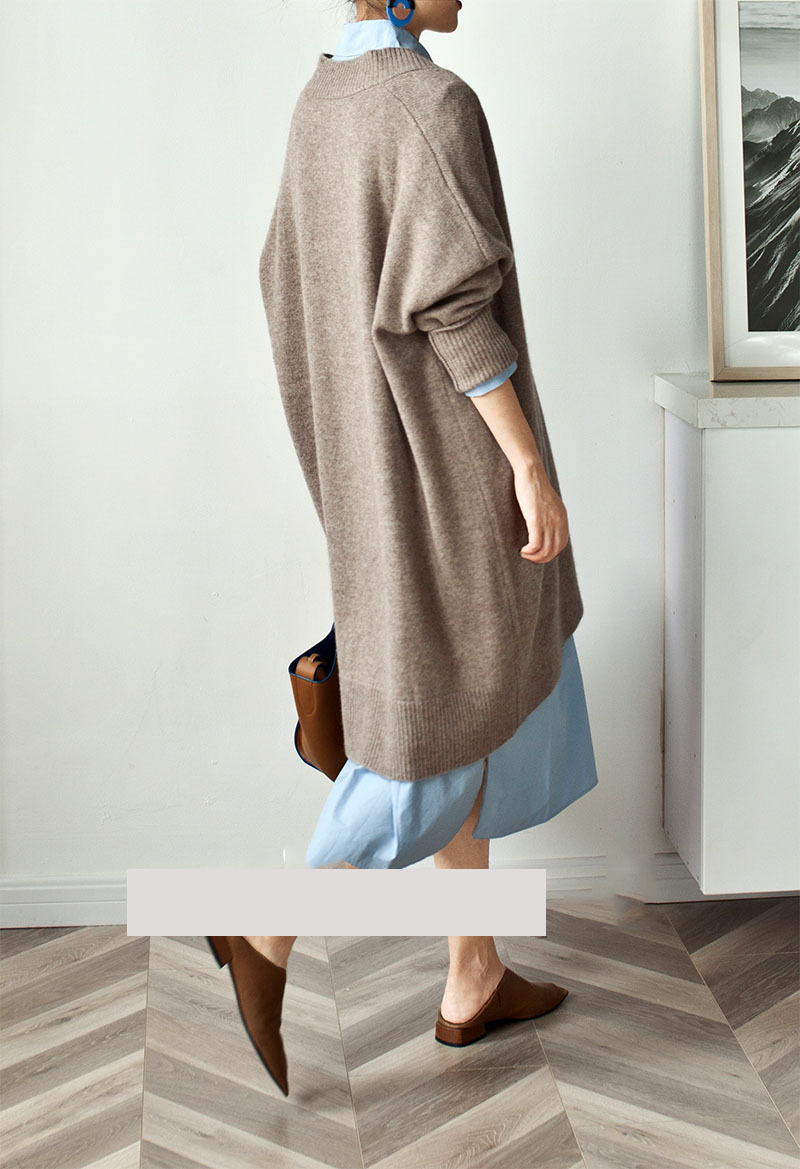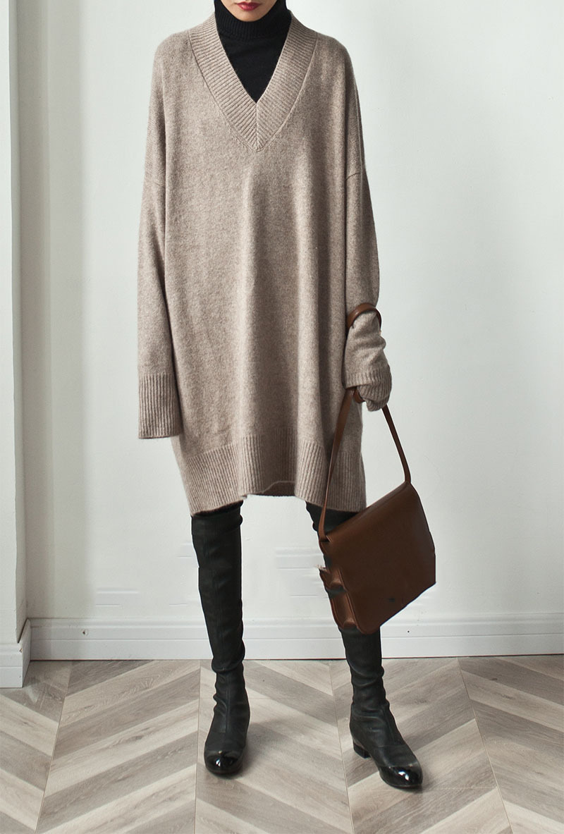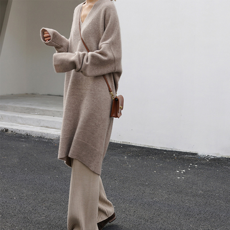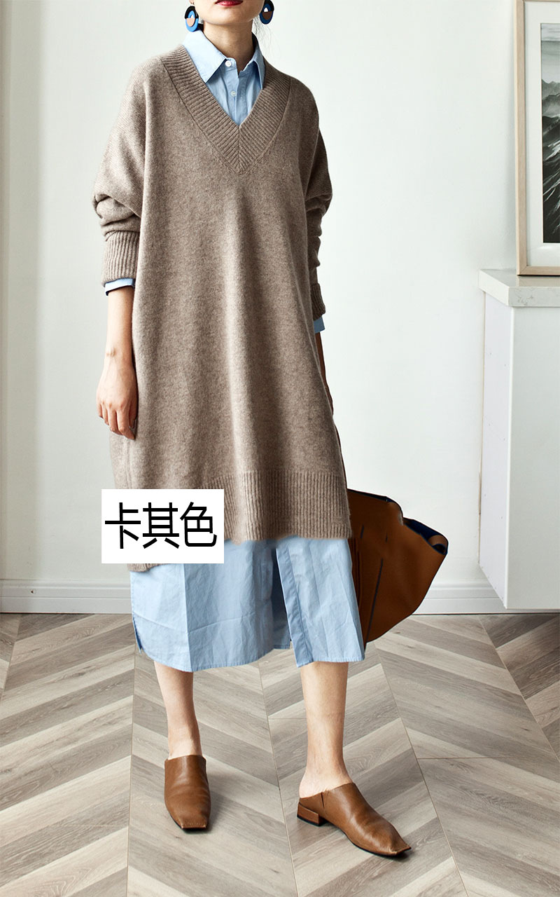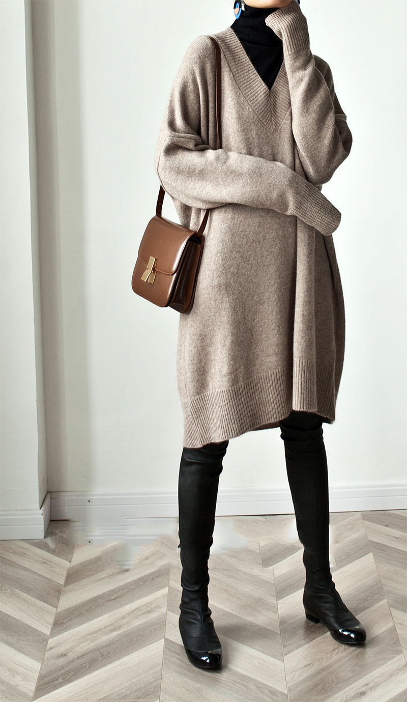 人気なリブニット ベーシック ニット カシミヤタッチ 秋冬Vネックニットセーターレディース ミドル丈厚手ゆったりセーターニットワンピース 裹起毛 長袖トップス 大きいサイズ 体型カバー