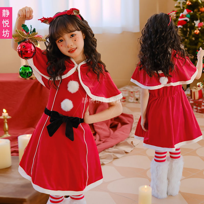 クリスマス 子供服 女子 ショールマント ドレス 赤いスカートパーティー ドレス サンタクロース クリスマス