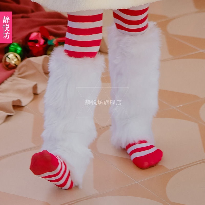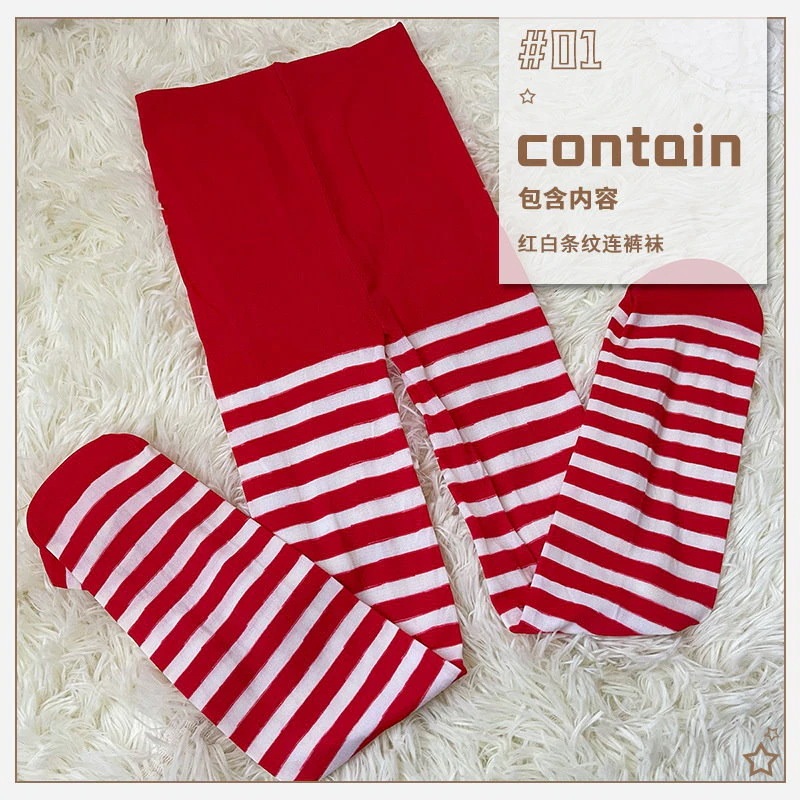 color: ストライプのパンスト マントのスカート 白い足カバー 頭飾り
