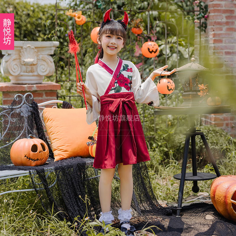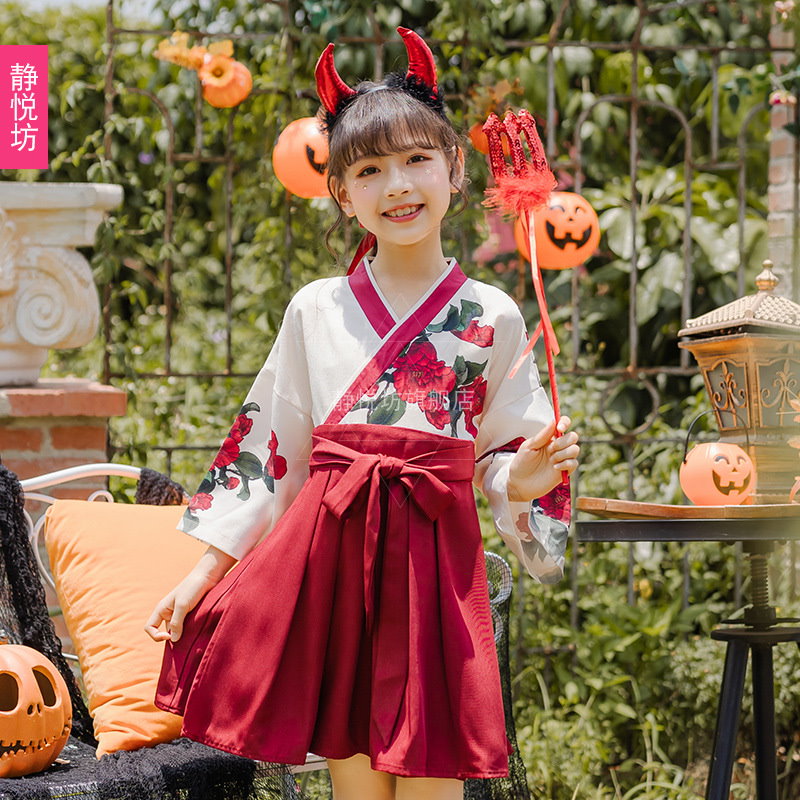 ハロウィーン 子供服装 赤い 魔女服 着物スーツ レトロな 女子 ワンピース 長袖漢 要素 巫婆 クリスマス