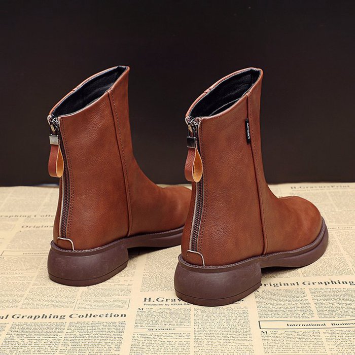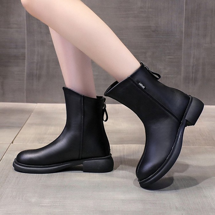 ショートブーツ レディース ローヒール マーチンブーツ ファスナー カジュアル シンプル シューズ 履きやすい 疲れにくい ショート ミドルブーツ