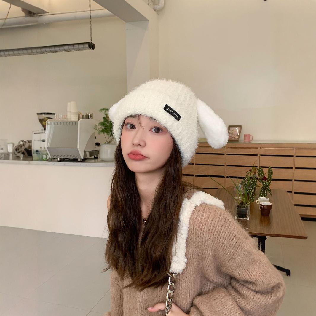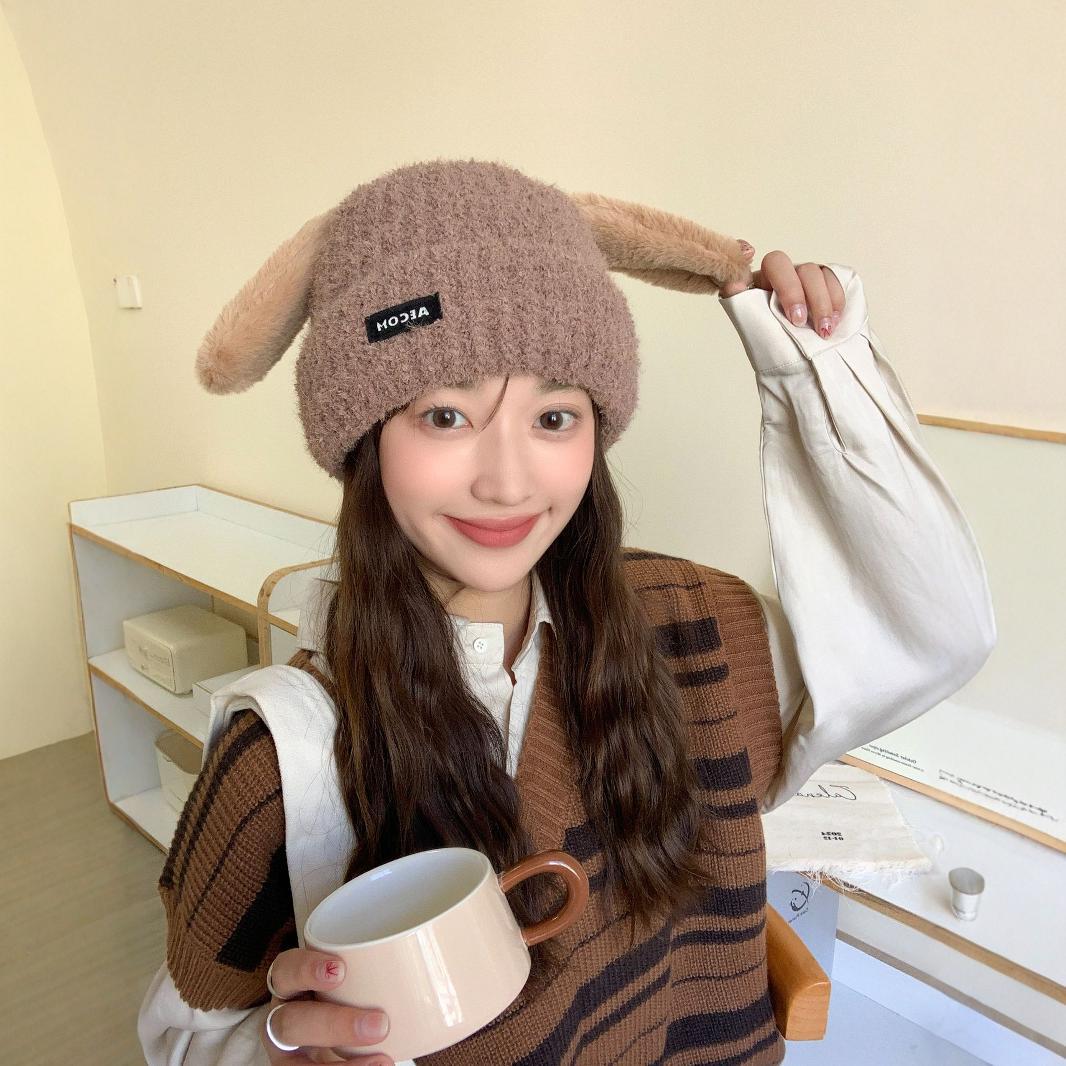 秋と冬の新しい帽子の韓国語版女性かわいい子犬の耳ニットウールキャップ冬暖かい学生の耳保護寒い帽子 ニット帽