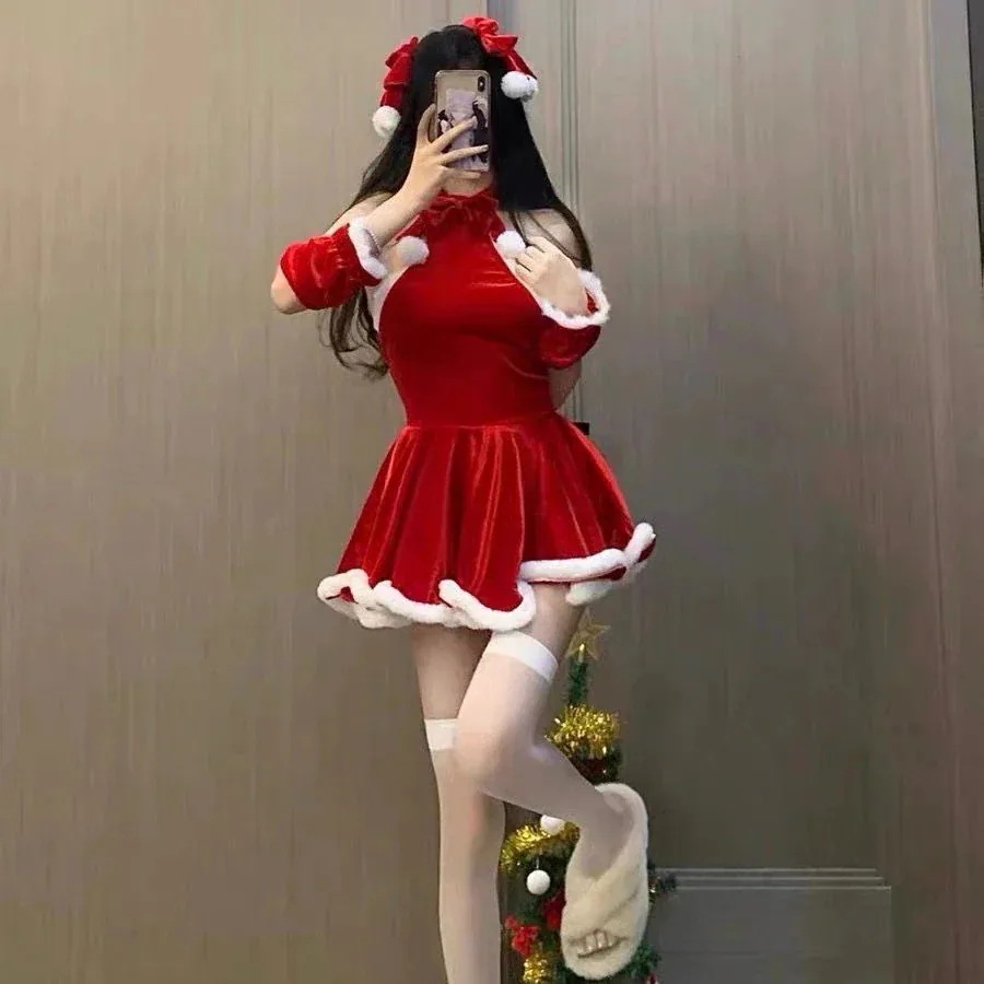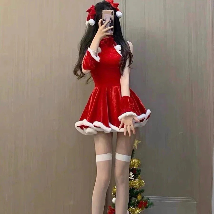 Qoo10限定クリスマス衣装 大人 レディース サンタクロース 仮装 サンタ コスプレドレス ワンピース セットアップ パーティードレス コスプレ セクシー クリスマスドレスフェスティバルパ
