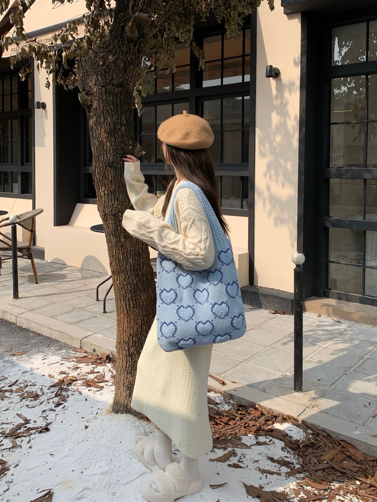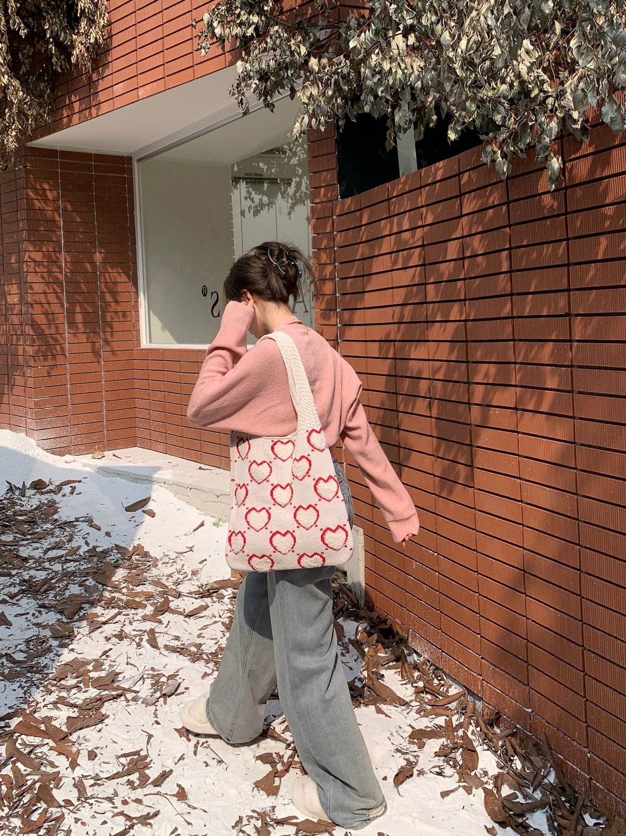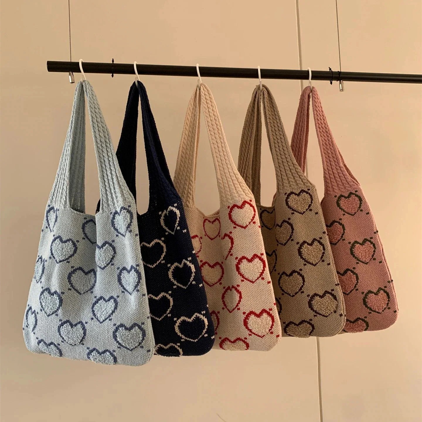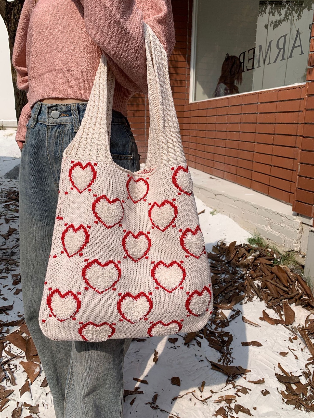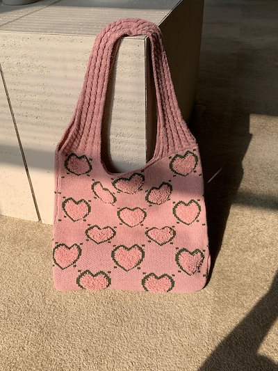 バック韓国 ハンドバッグ 便利 トートバッグ ファッション ハート ニットパック 毛糸 編む コーディネート レディース 感 ハンドバッグ ソ フト 大容量トートバッグ エコバッグ