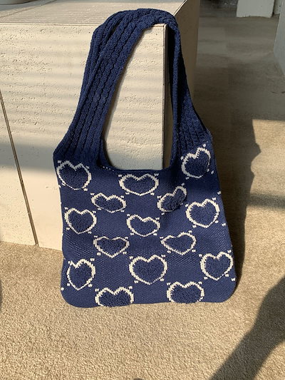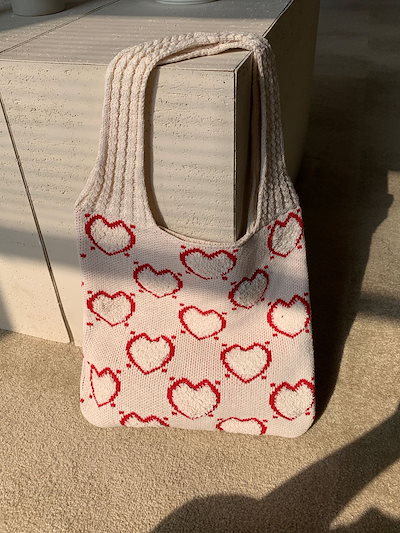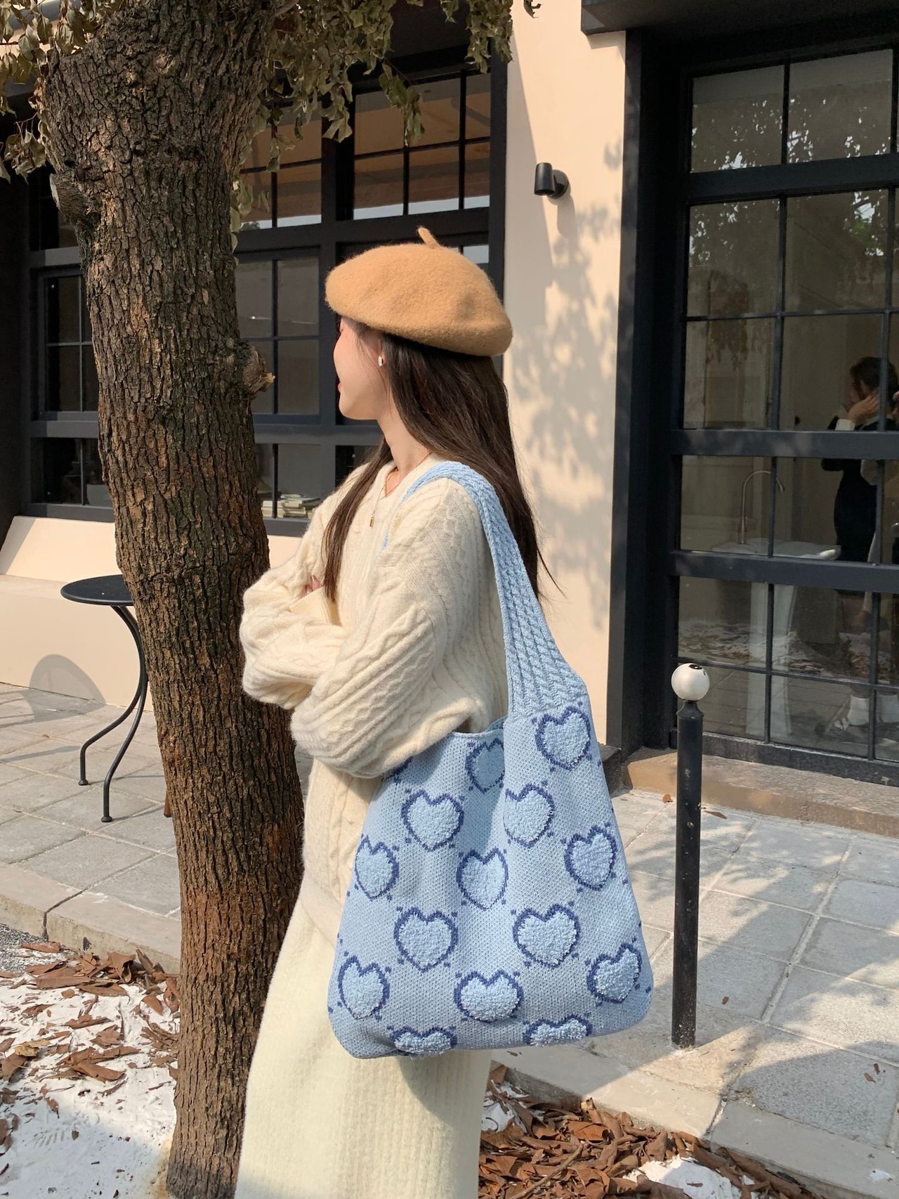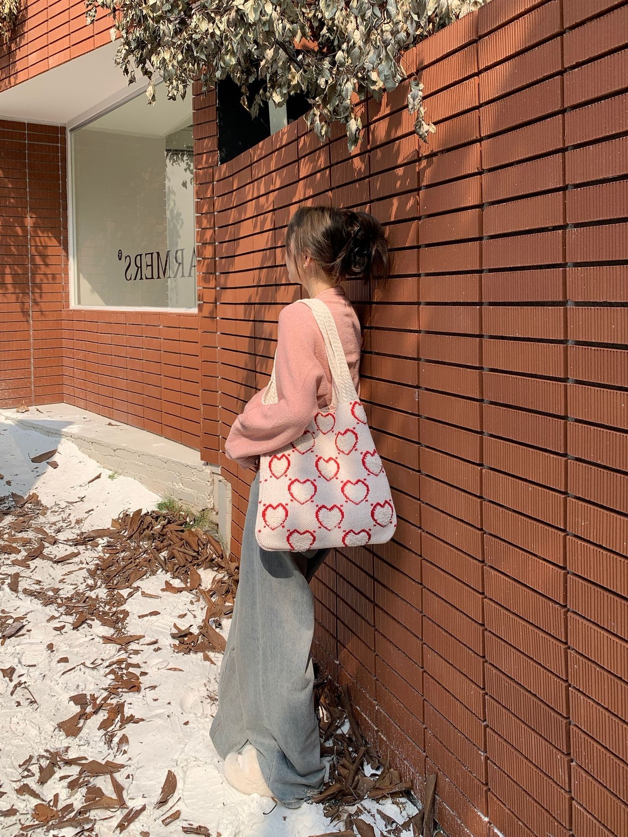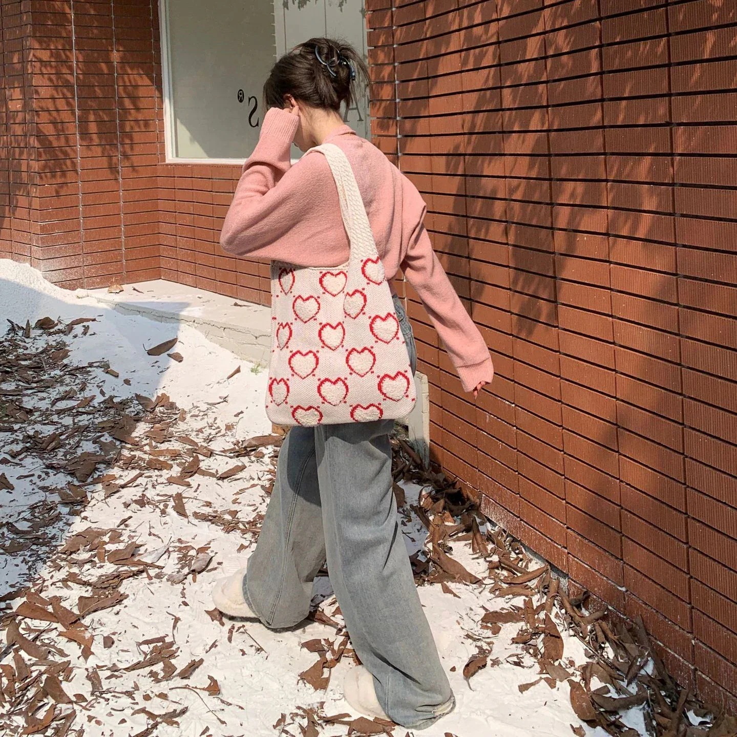 バック韓国 ハンドバッグ 便利 トートバッグ ファッション ハート ニットパック 毛糸 編む コーディネート レディース 感 ハンドバッグ ソ フト 大容量トートバッグ エコバッグ