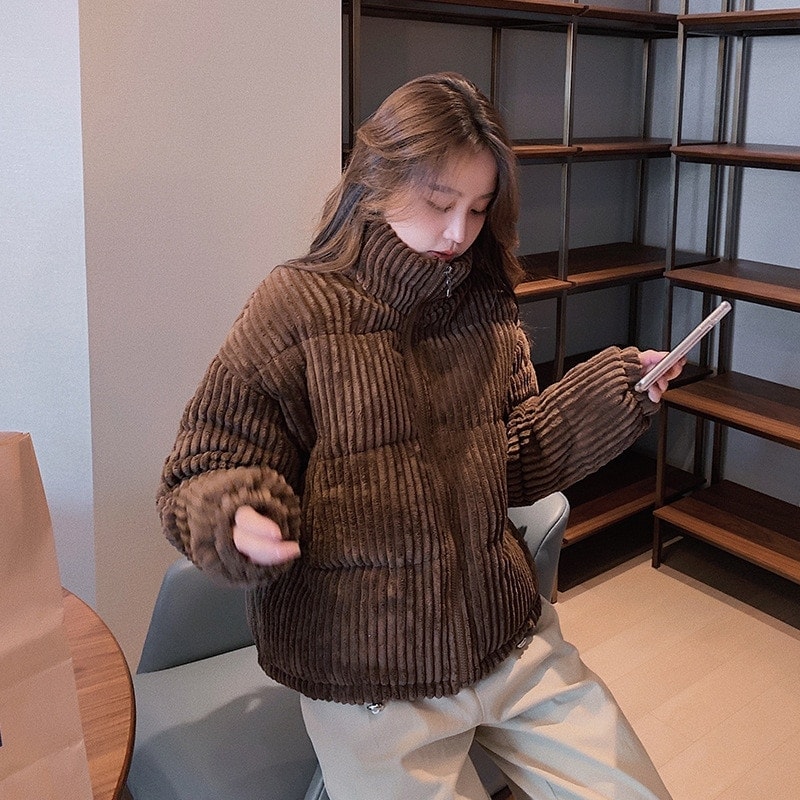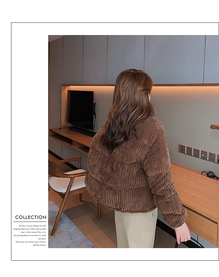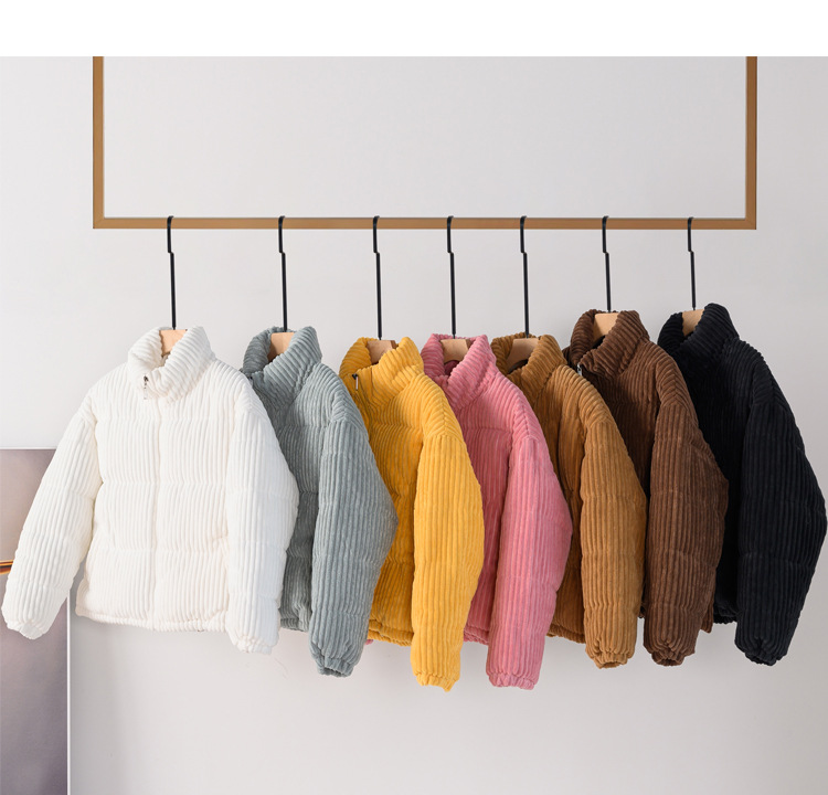 2024秋冬新韓版ゆとりコーデュロイコットン着痩せ女性小柄ショート丈コットンジャケット コットンジャケット 綿入れ ダウンジャケット コート