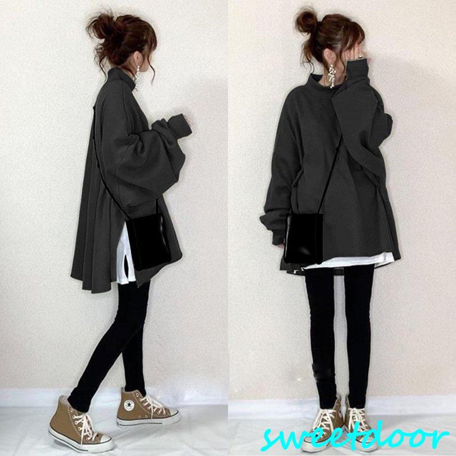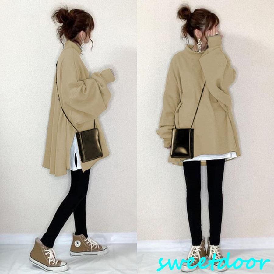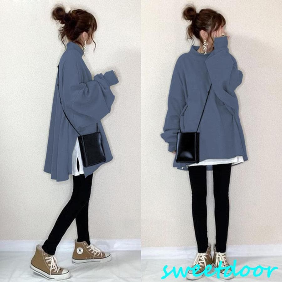 パーカー トップス レディース 長袖トップス 秋トップス オシャレ 重ね着 カジュアル ゆったり 体型カバー シンプル 着痩せ スリット パフスリーブ 大人