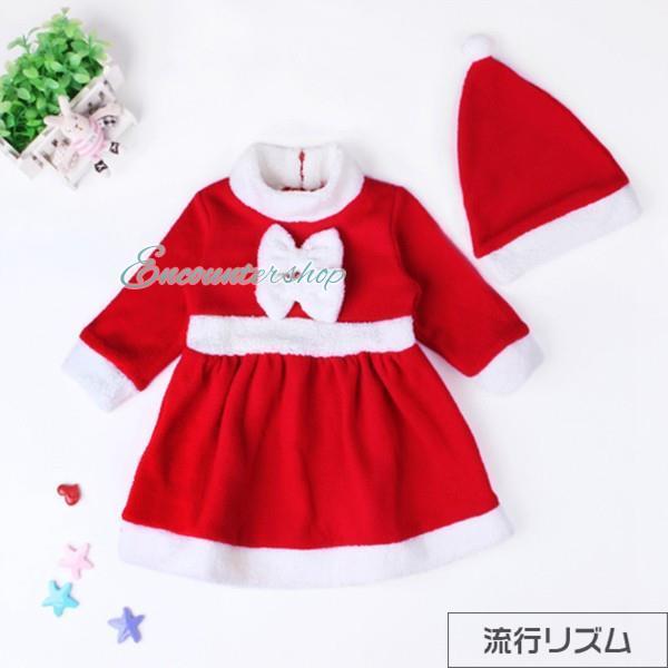 サンタ服 女の子 キッズ サンタコスプレ サンタクロース クリスマス衣装 2点セット ワンピース帽子 パーティー クリスマス
