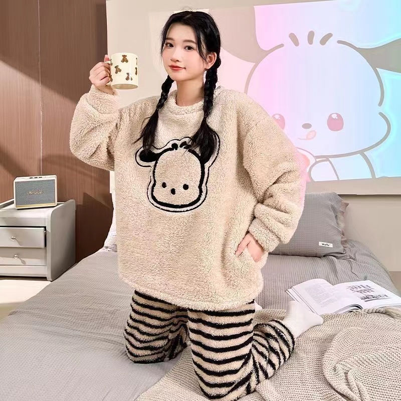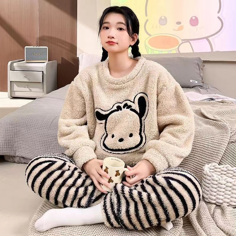 パジャマ女性秋冬ベルベットかわいいアニメパジャマ秋冬保温フランネル家庭服セット女性メガ割 メガ割 秋冬 裏起毛 ルームウェア 上下セット 長袖