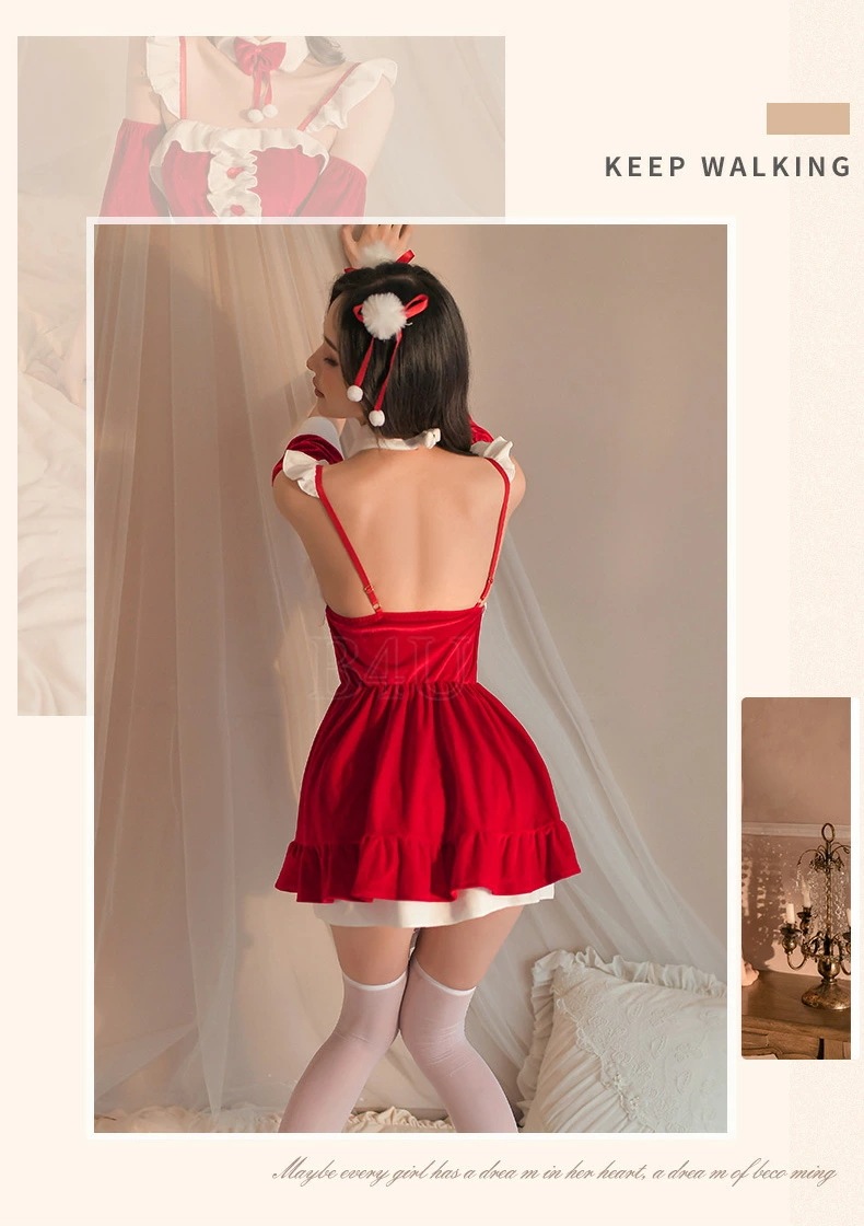 クリスマスコスプレ コスチューム ドレス レディース 5点セット 衣装 仮装 ワンピース サンタ パーティードレス ウサギ かわいい クリスマス衣装 サンタコス サンタクロース 演出服 パーティ