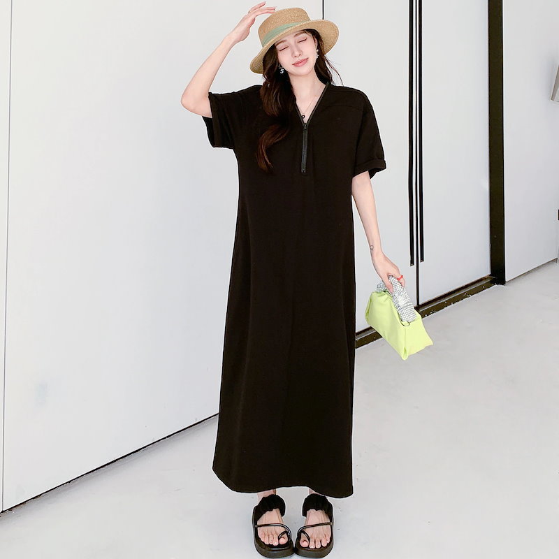 シャツワンピース 夏 レディースロング ワンピース 半袖 夏服 ロング丈マキシ丈 ロングワンピース 体型カバー Tシャツワンピース 無地 ゆったり着痩せ 大きめサイズ 韓国ファッション