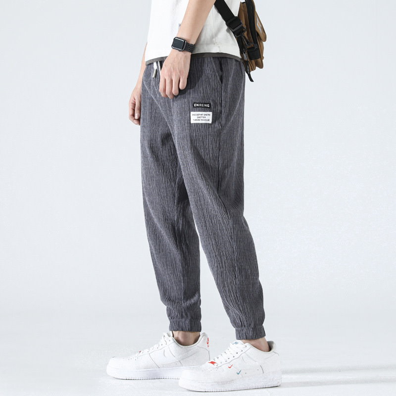 ゆったり冷感無地パンツメンズ夏薄手アイスシルクウエストパンツカジュアルロングパンツスポーツ九分パンツ