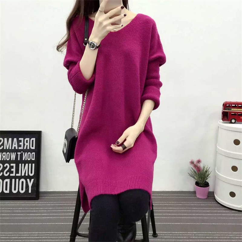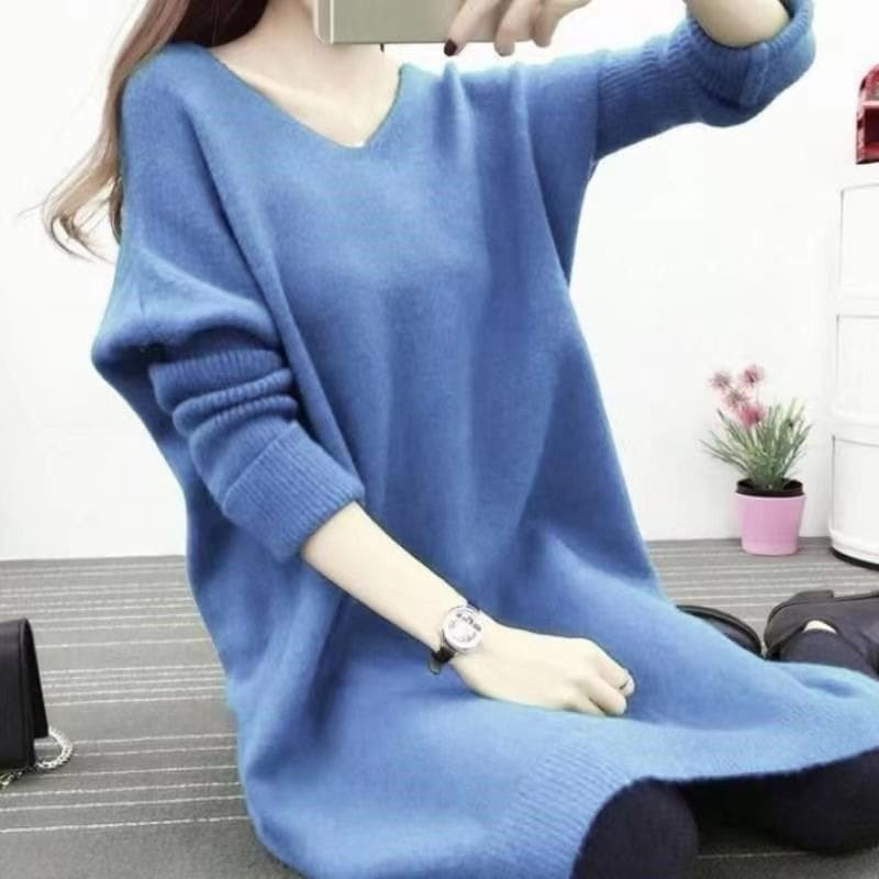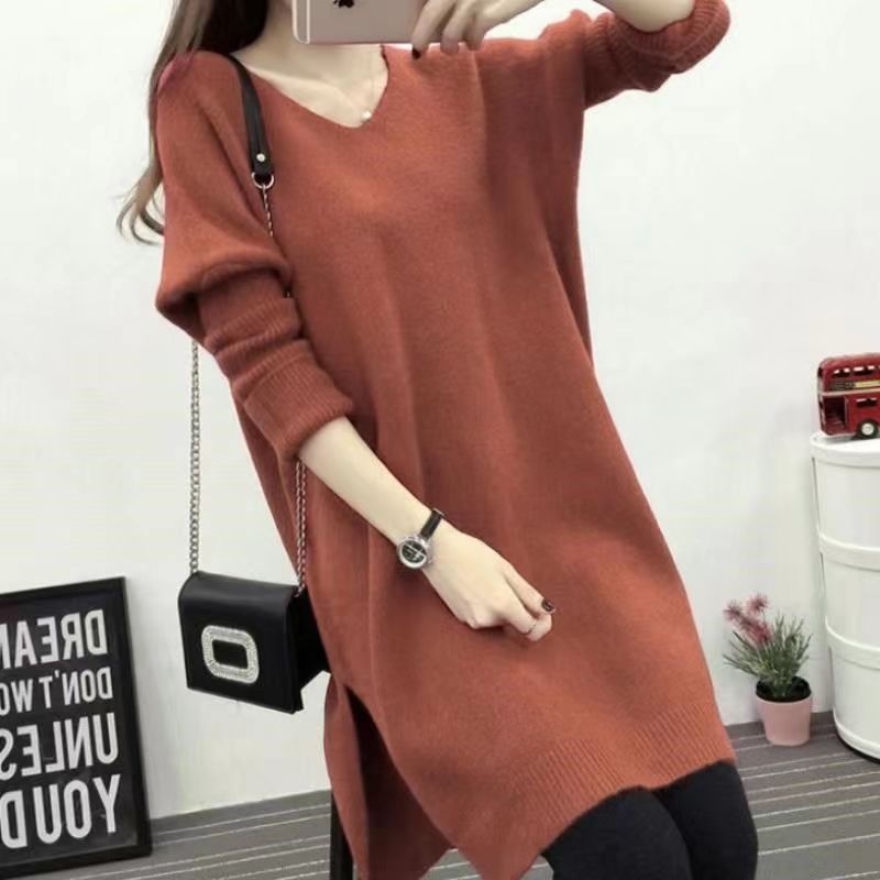 秋冬 ニットカーディガン チュニック セーター Vネック ロング ミーリング お肌に優しい バットウィングスリーブ 流行り スリット カジュアル 百搭 韓国ファッション レトロ 気質