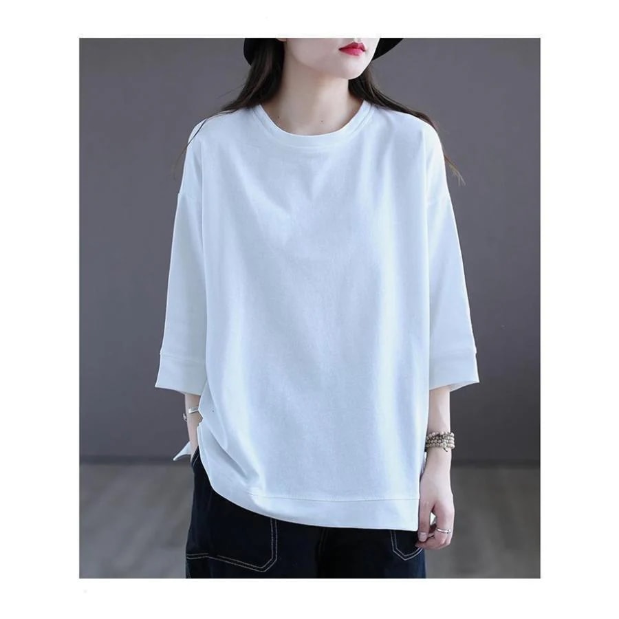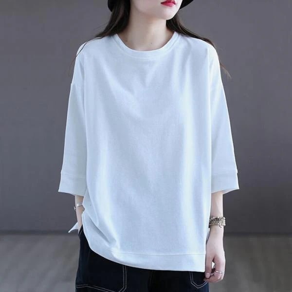 チュニック七分袖Tシャツレディース体型カバー無地クルーネックスリットトップスカットソーカジュアル夏ナチュラル Tシャツ カットソー