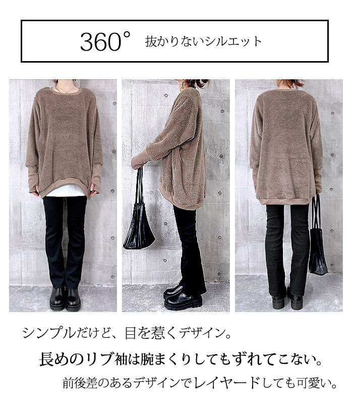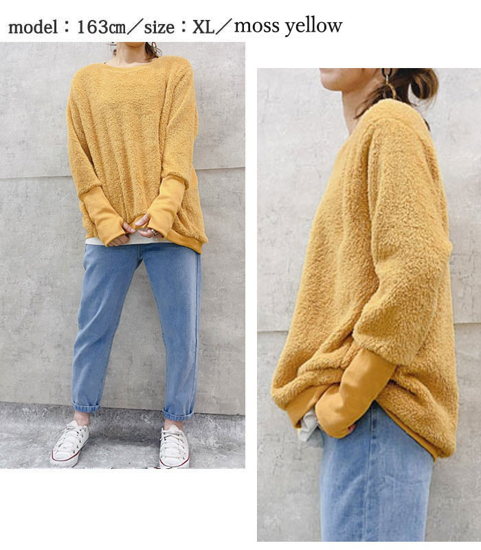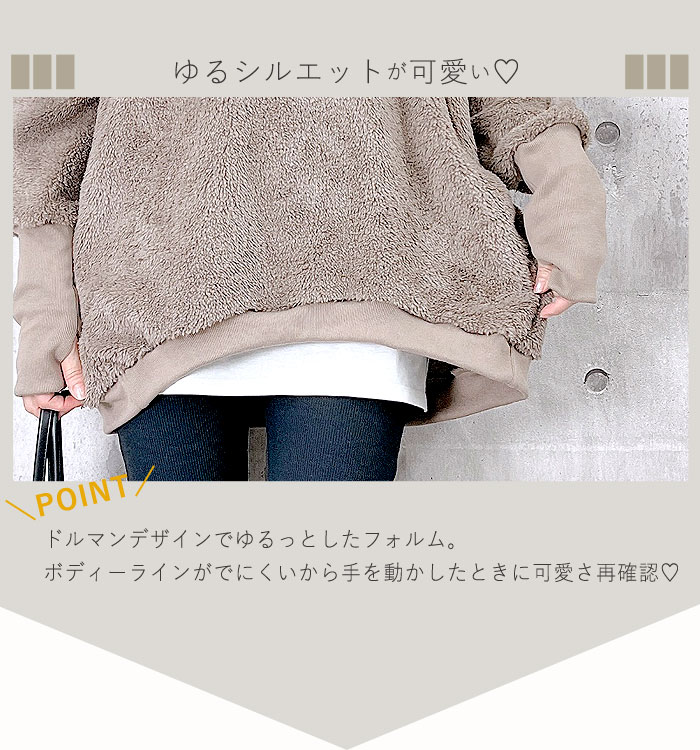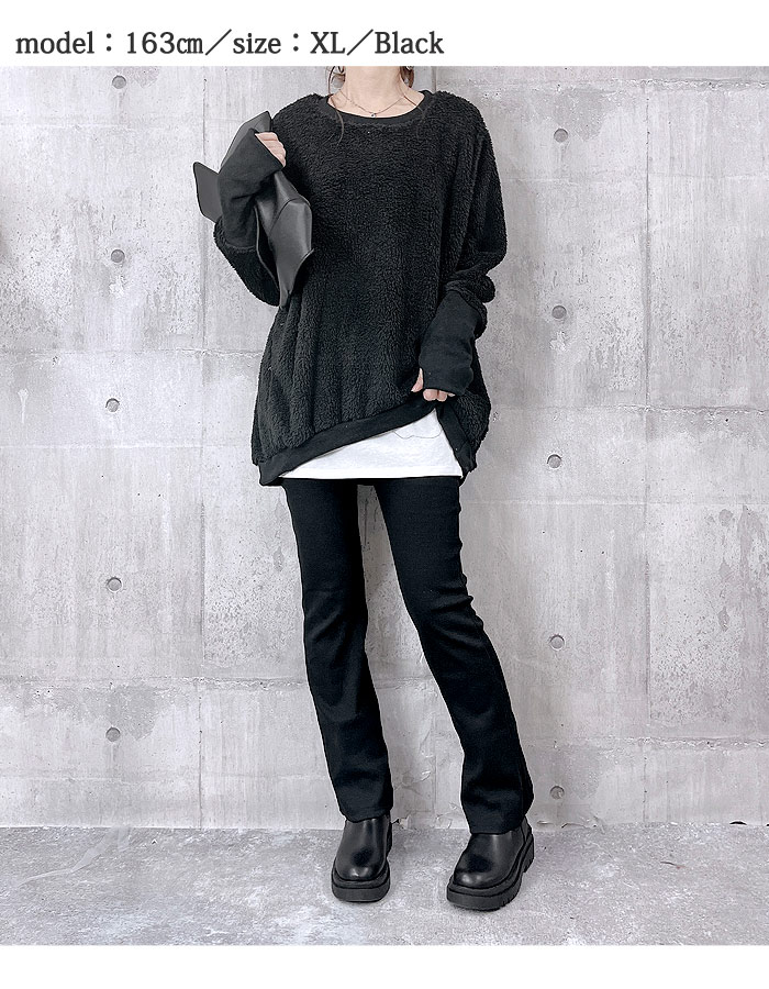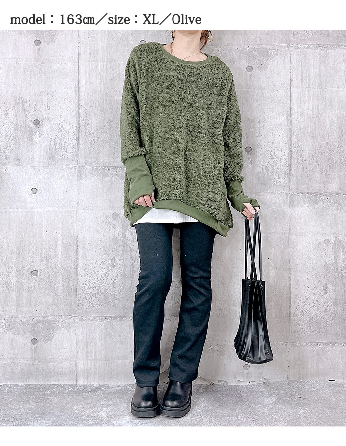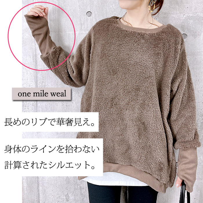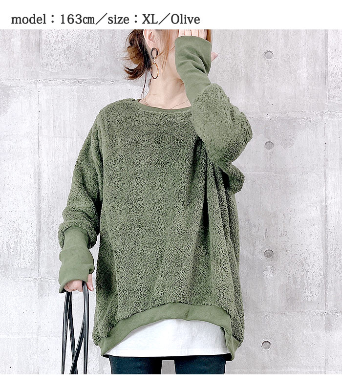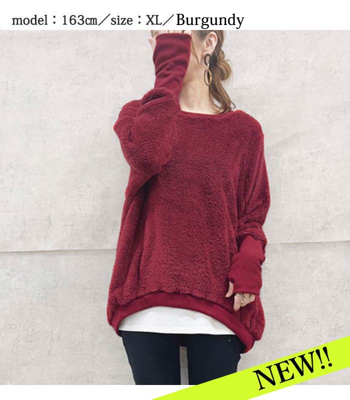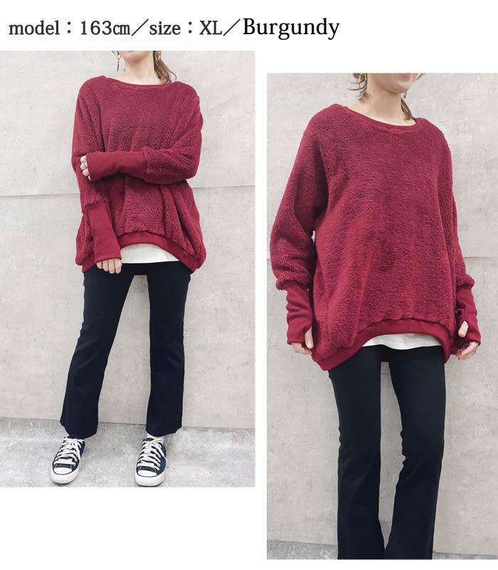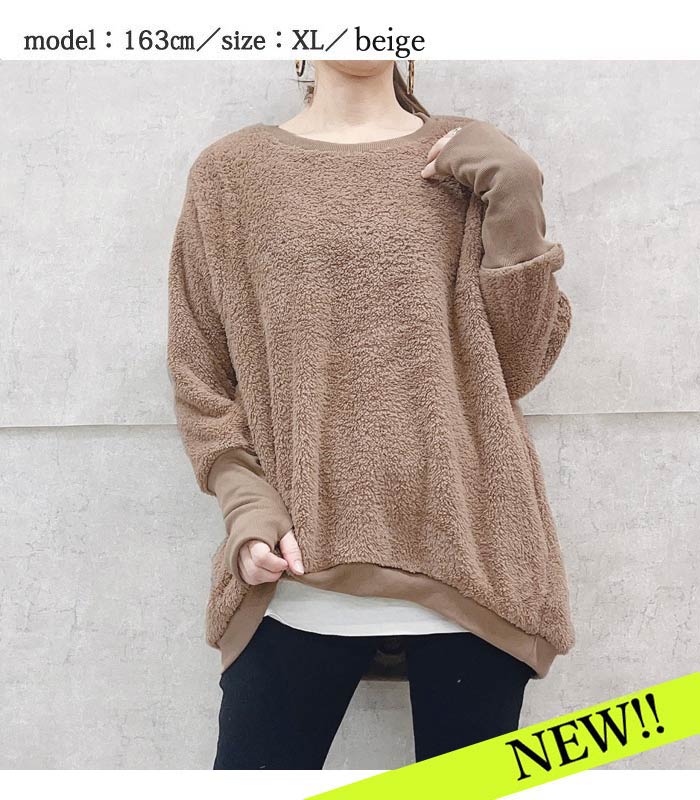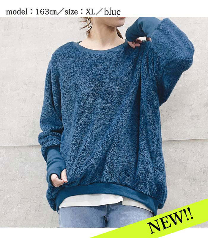 フリース ボア トレーナー トップス レディース 大きいサイズ 韓国 リブ長 おしゃれ ルームウェア 指穴[郵3]^t958^ トレーナー
