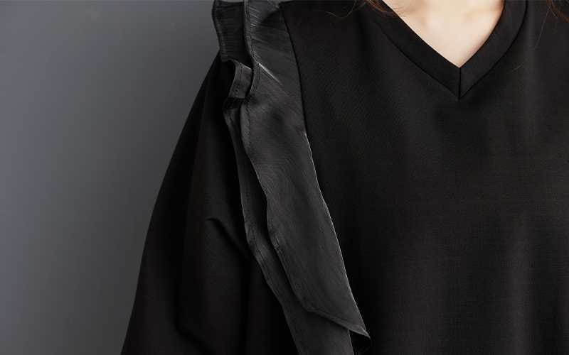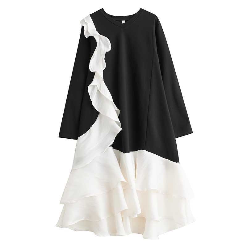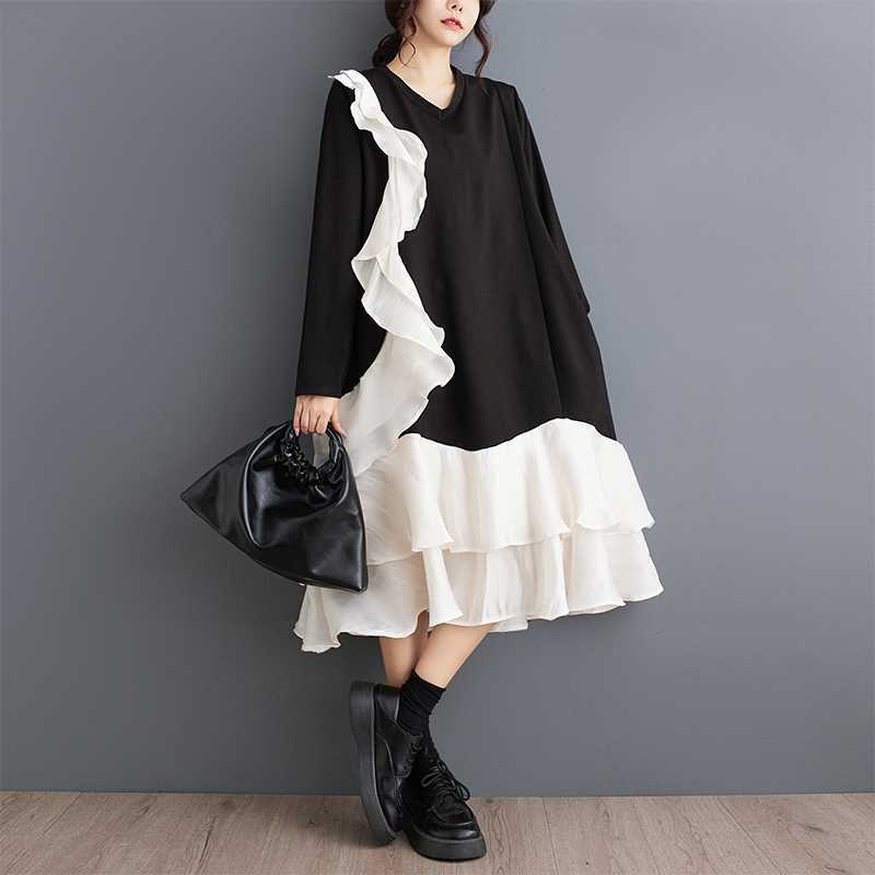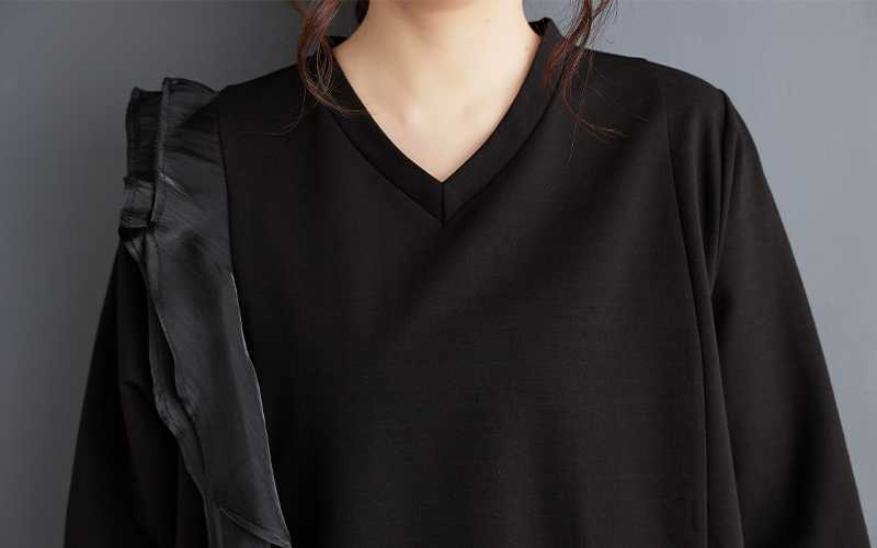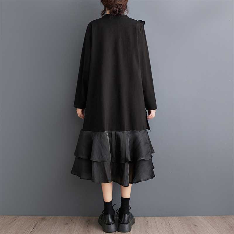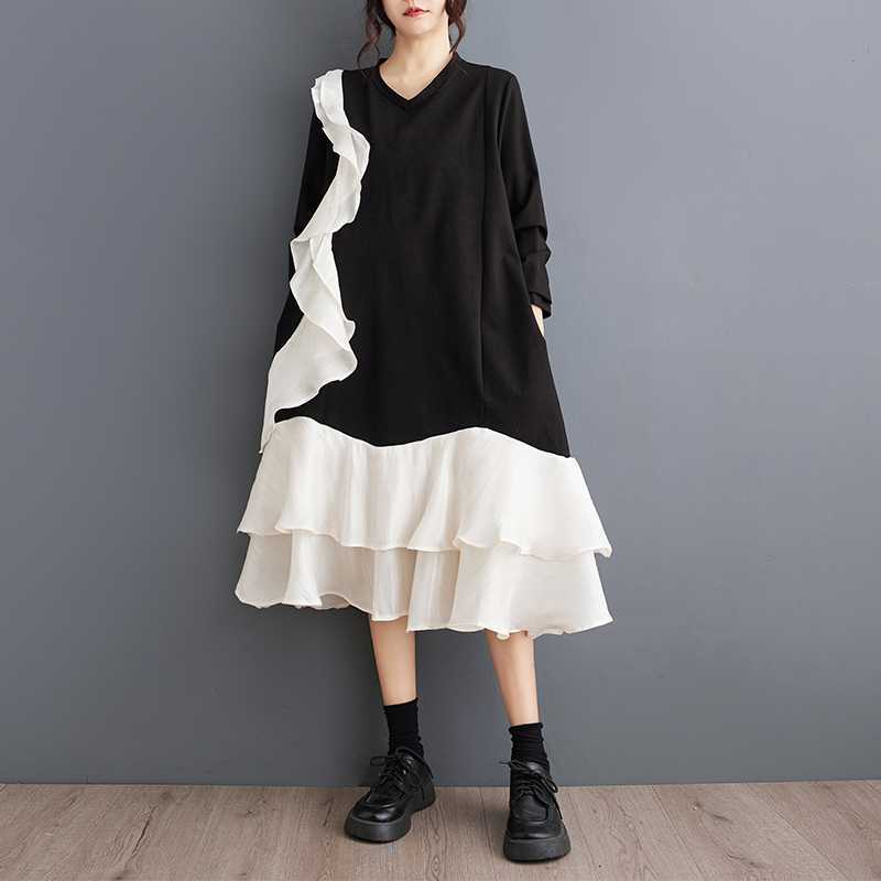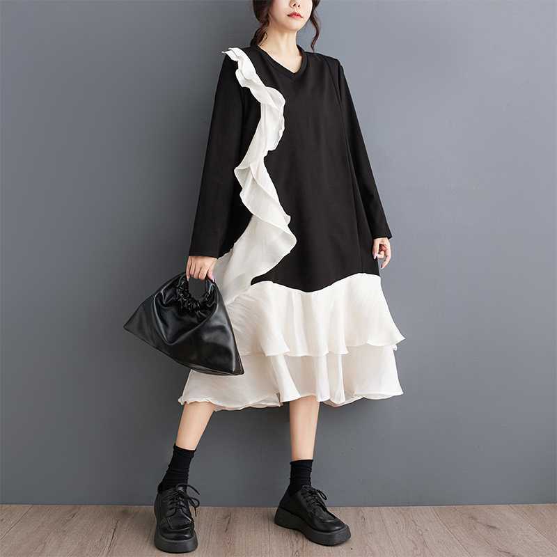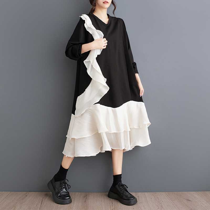 2024秋新品 フリフワンピース 大きいサイズ 体型カバー レディース vネック ドッキング ロングワンピース メガ割 シャツワンピ