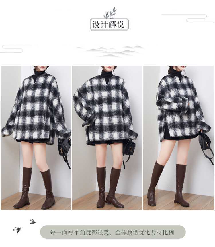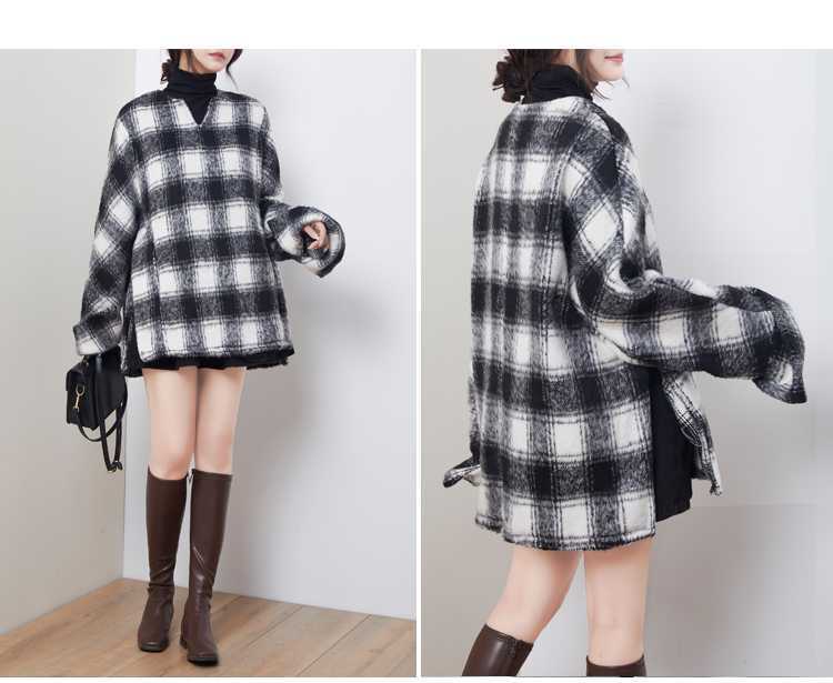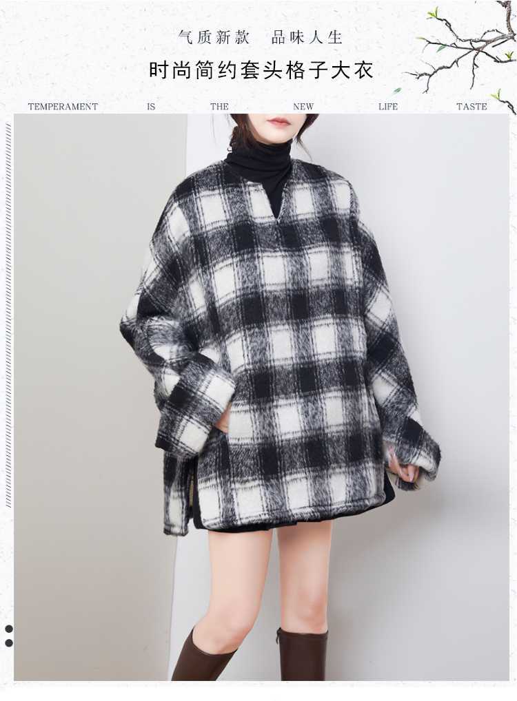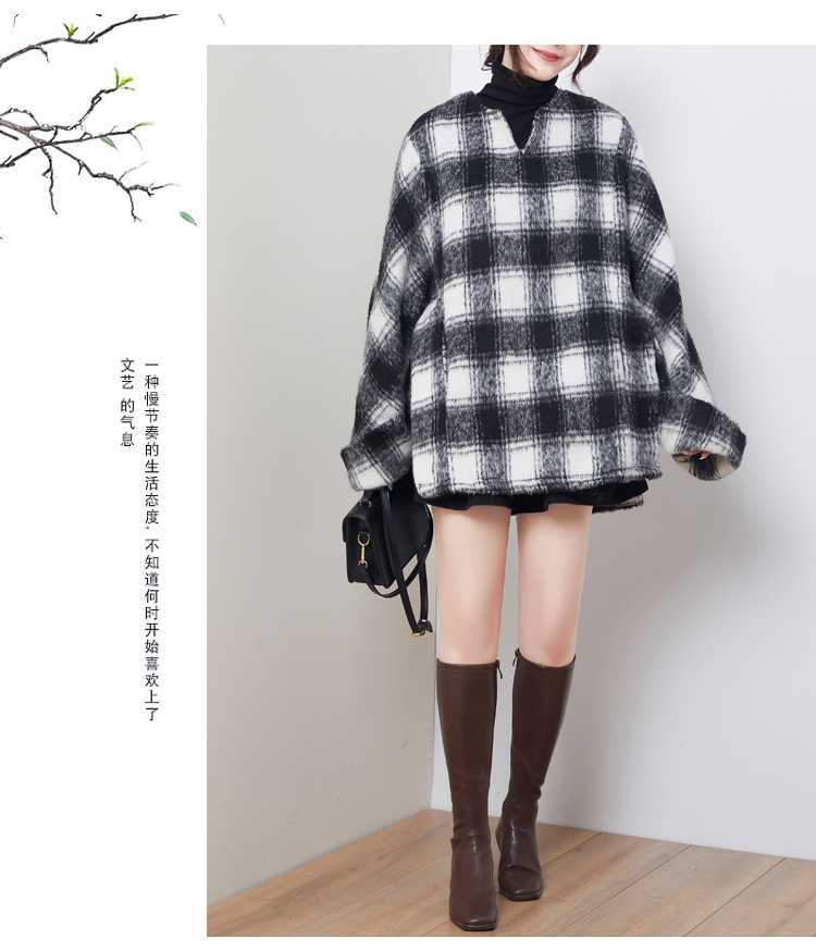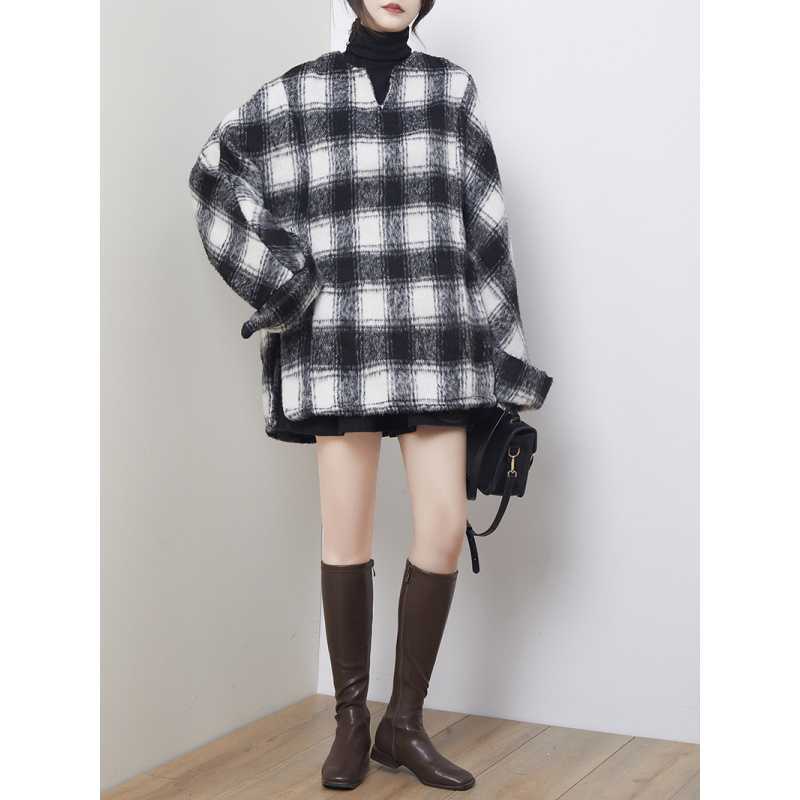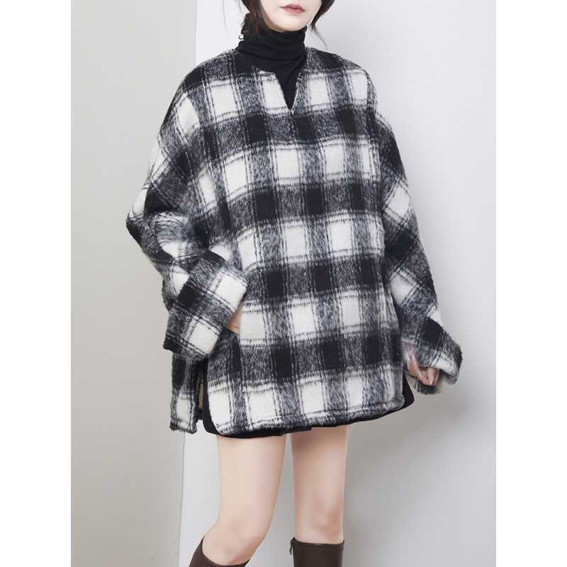 2024秋冬新品 黒白格子 チェック アウター 大きいサイズ 体型カバー レディース コート メガ割 ツイードジャケット