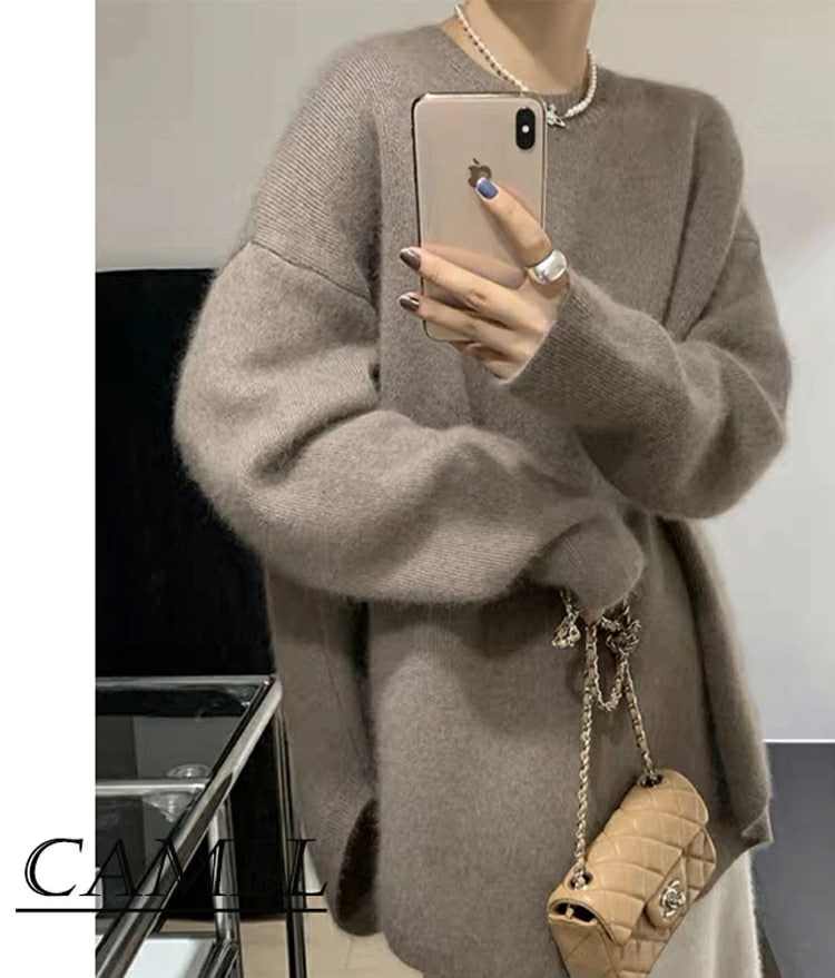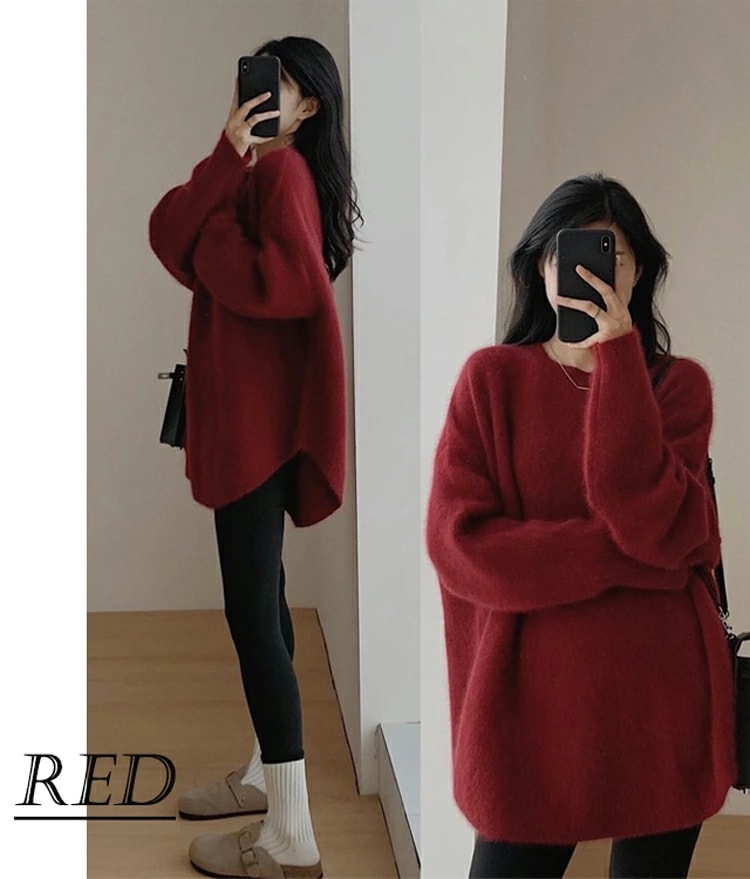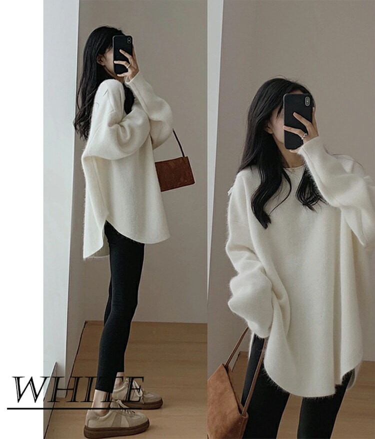 新品入荷 ニット セーター レディース 微起毛 秋冬 長袖 暖かい ラウンドヘム ラウンドネック モヘア シャギー オーバーサイズ ゆったり トップス チュニック丈 ドロップショルダー こなれ感