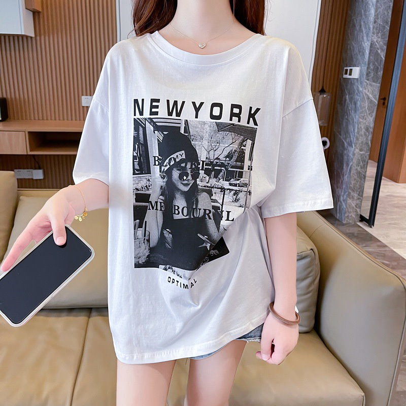純綿 トップス 半袖 韓国ファッション 透ける 夏服 Tシャツ カジュアル ゆったり レディース服 ブラウス ロングタイプ
