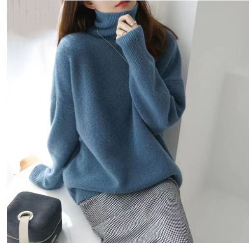 着るだけモテニット 厚手ハイネックニット服セーター女性ルーズレイジーウーセーター ハイカラー大サイズ無地厚手シャツ ニット