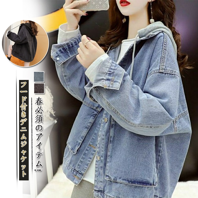 春 フード付きデニムアウター 韓国風 ゆったり 新作 オシャレオールマッチ レトロトップス デニムジャケット コート