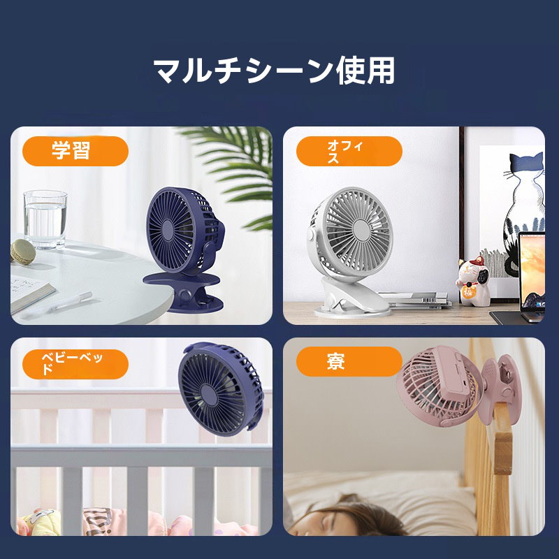 扇風機 クリップ式扇風機 USB扇風機 卓上扇風機 卓上 クリップ 720度回転 小型 超静音 大風量 強力 風量3段階調節 節電 ベビーカー ミニ扇風機 usb充電式 熱中症対策