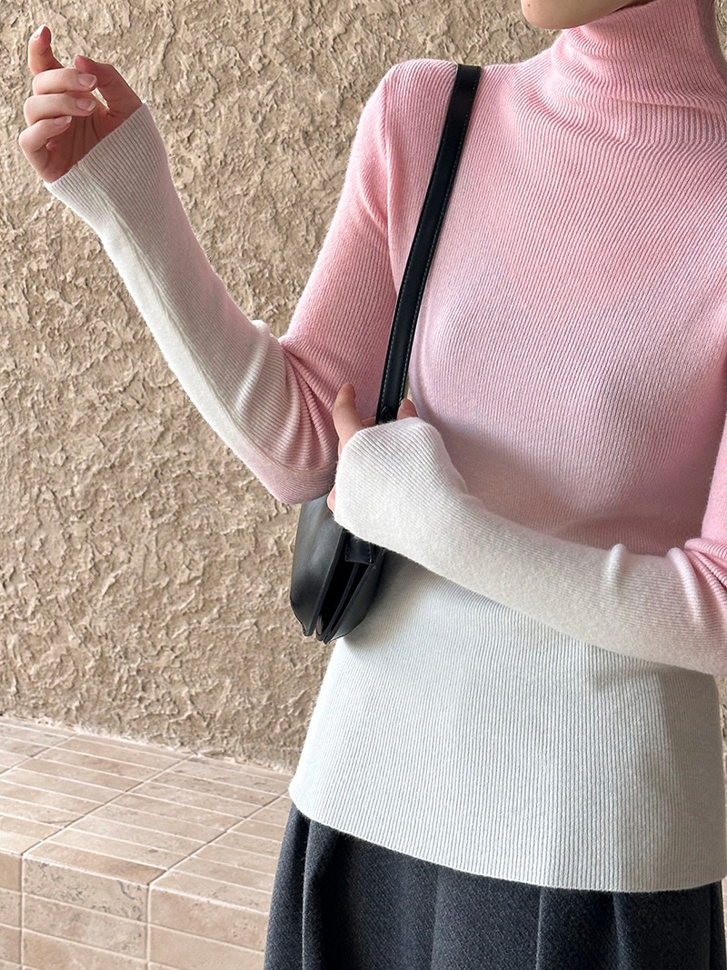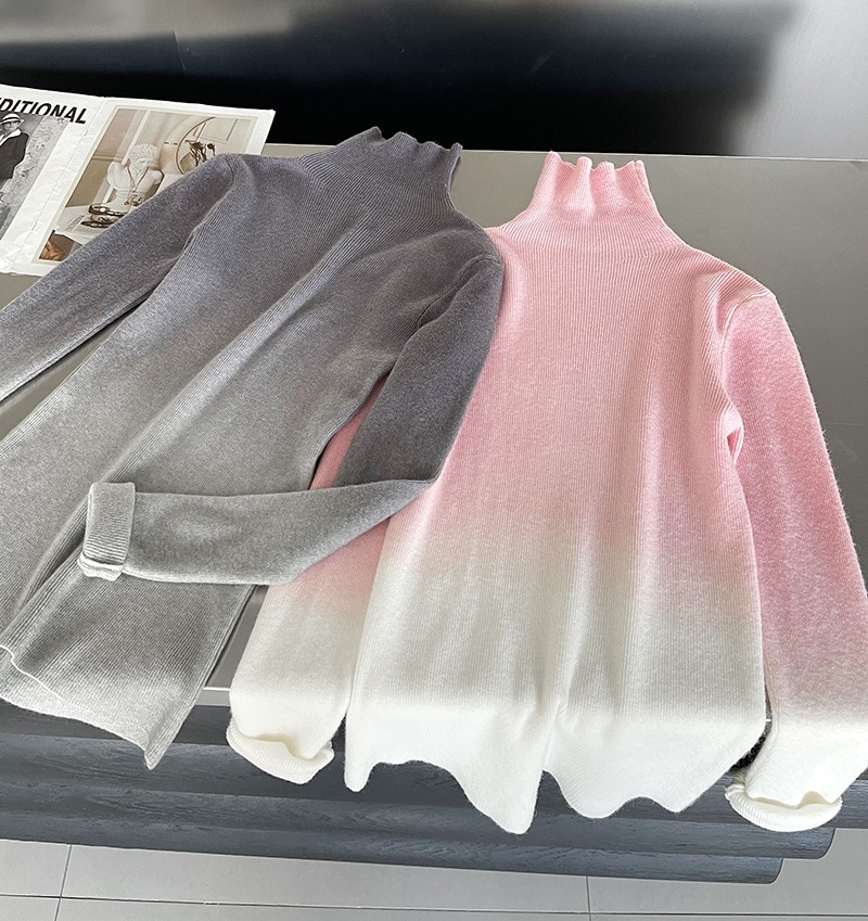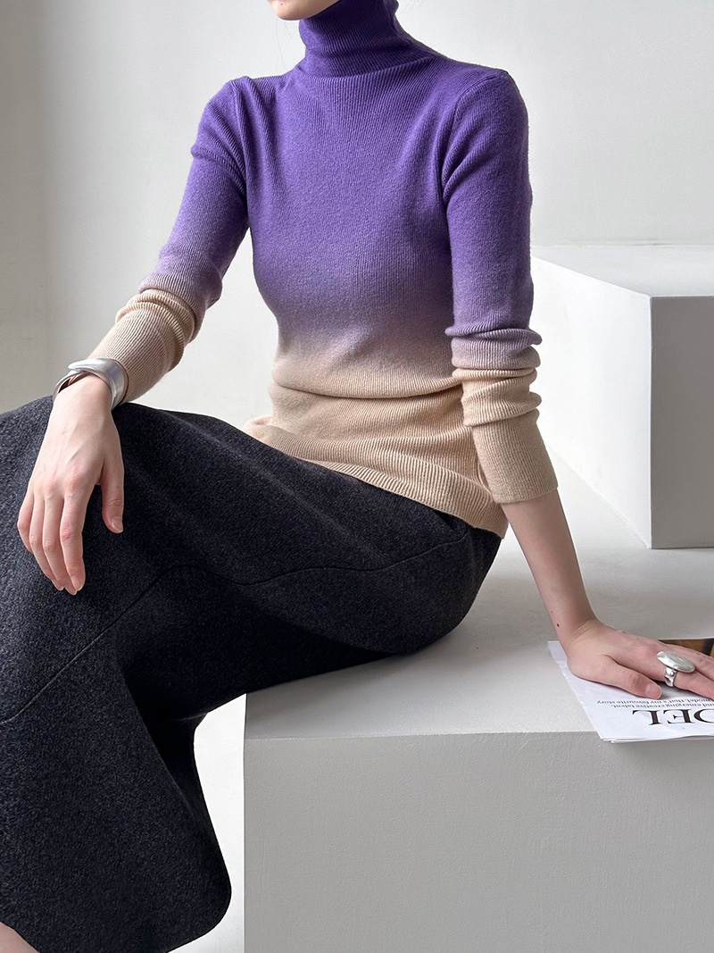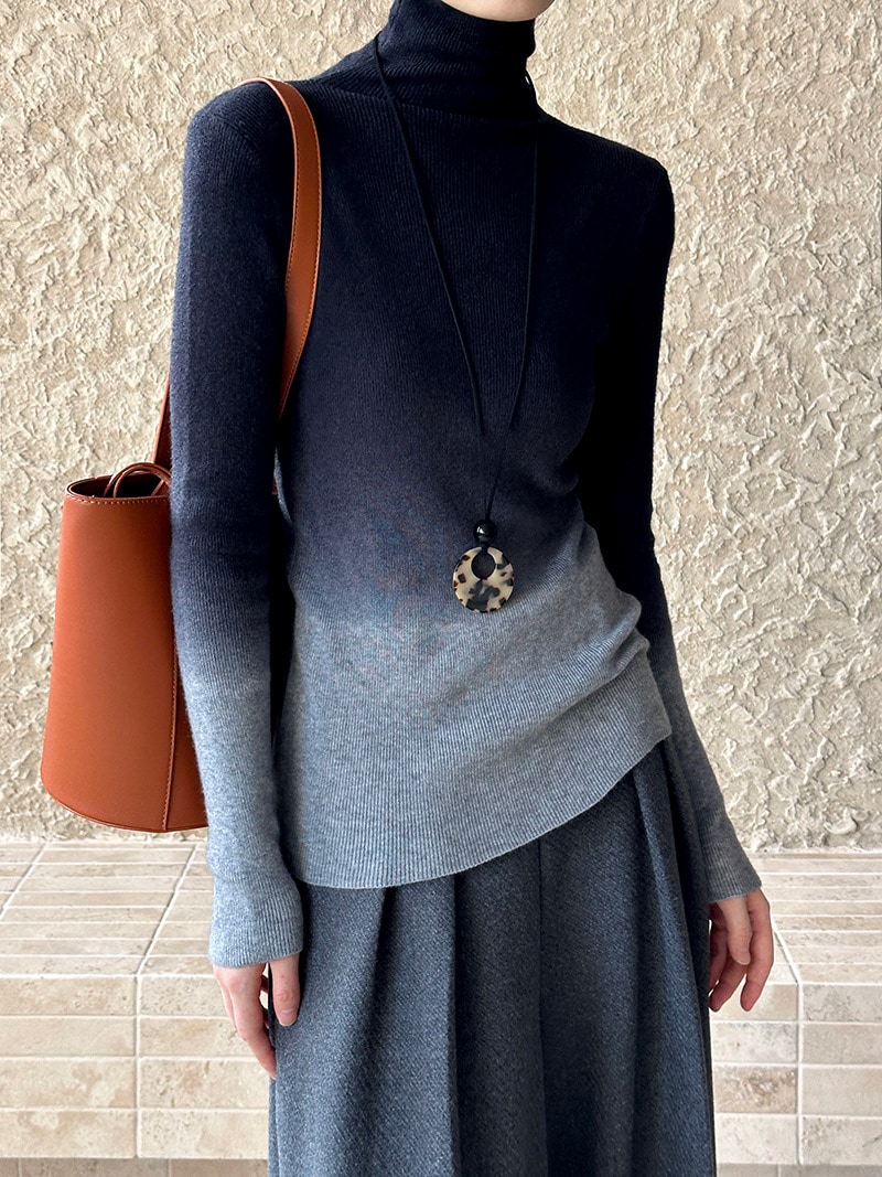 グラデーションニット タートルネック レディース トップス リブインナー ニット