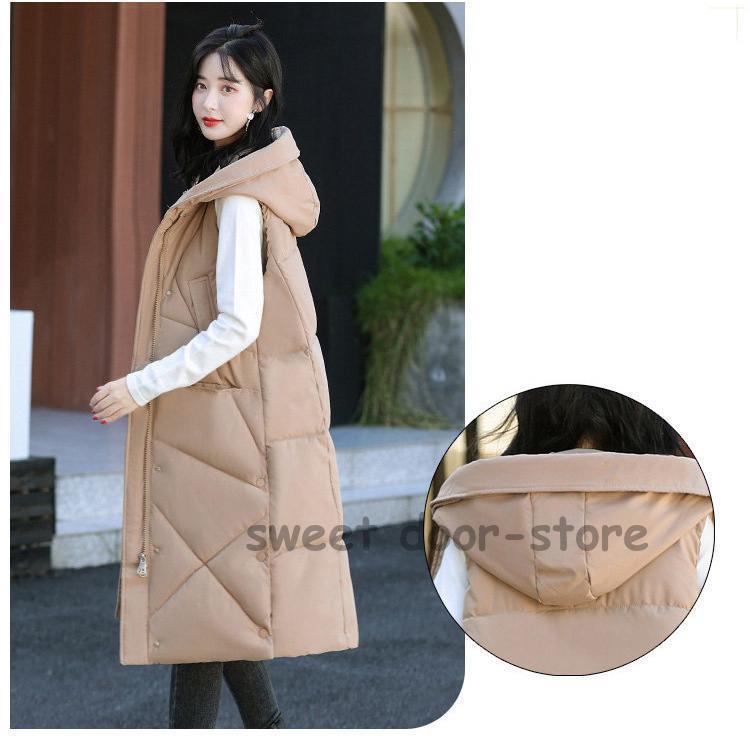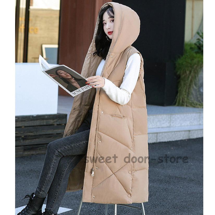 ベスト レディース 中綿ベスト ロングベスト ダウンベスト トップス フード付き 前開き 暖かい 防寒 秋冬 アウター 軽量 着痩せ ベスト