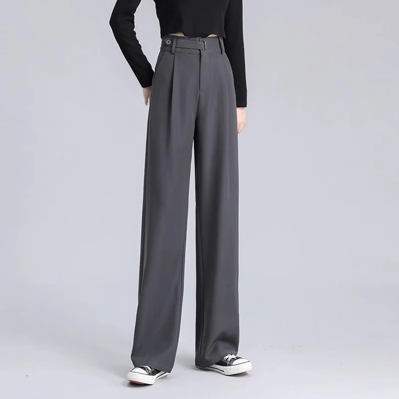 ハイウエスト 美脚 脚長 ストレートパンツ レディース ボタンストラップ ワイドパンツ 女性 ボトムス ワイド パンツ ハイウエストパンツ ズボン 長ズボン ロングパンツ