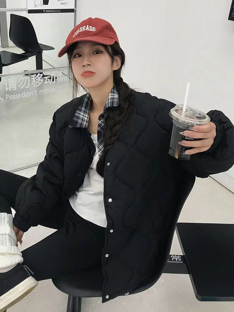2024新型菱格ダウン綿入れコート韓国系冬コートショート丈ゆったり小柄綿入れ その他 アウター