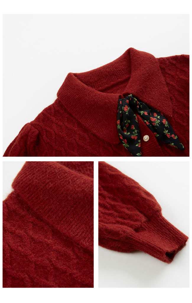 ニットカーディガン ショート レディース ニットセーター 前あき レトロ コーディガン スカーフ付き おしゃれ ニット トップス 長袖 春 秋 冬 ワインレッド イエロー ブラック ベージュ ブルー
