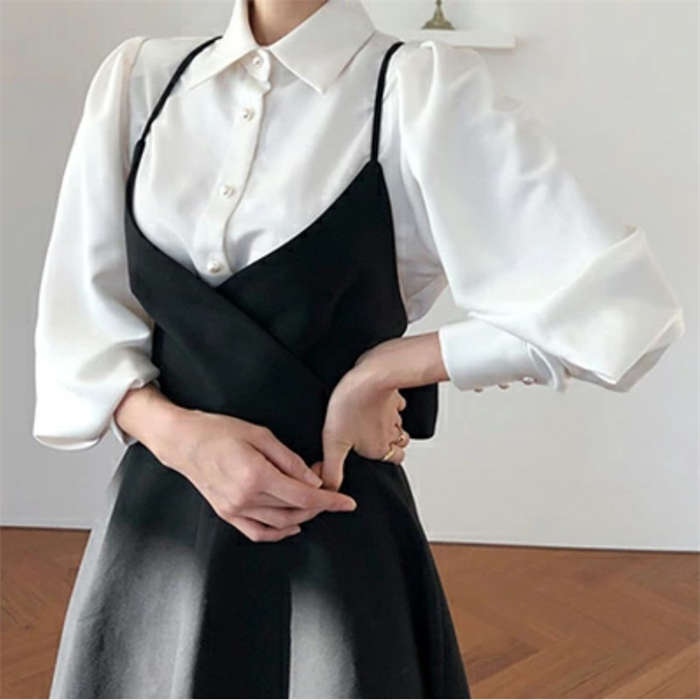 シアースリーブ ドッキングシャツ ボウタイシャツブラウス