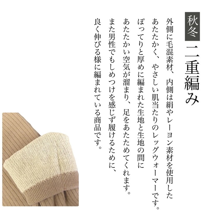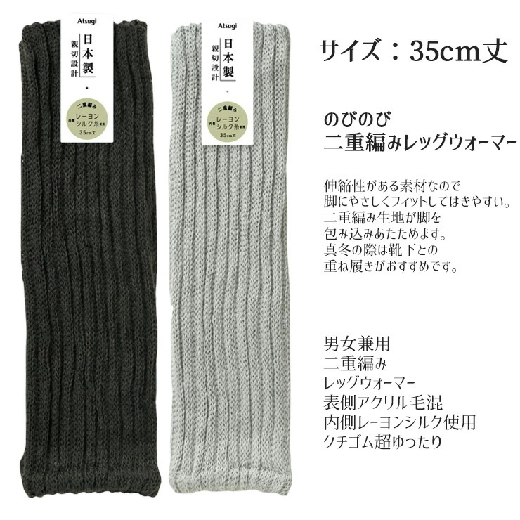 ATSUGI レッグウォーマー 男女兼用 親切設計 二重編み 35cm丈 WSA1399 単品 締め付けない 暖かい シルク混 毛混