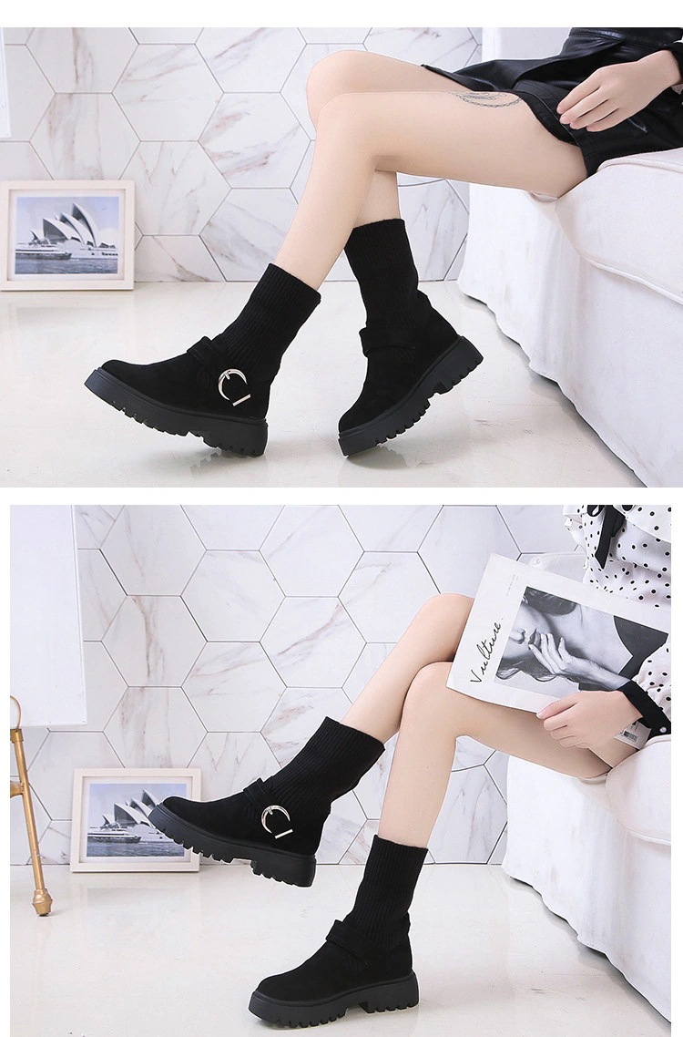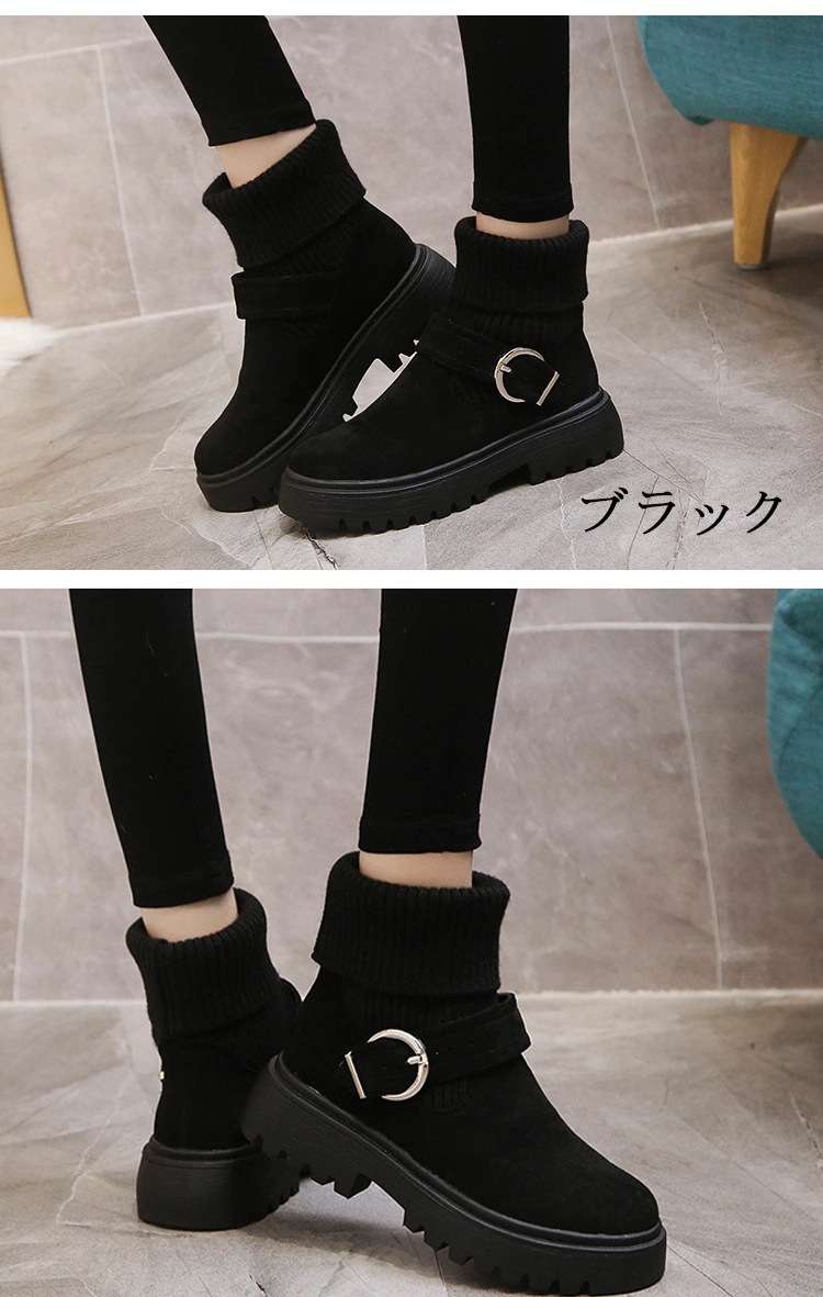 ソックスブーツ レディース ストレッチ 厚底 ショートブーツ 黒 ブーツ 歩きやすい ボア ショートローヒール きれいめ ソックスシューズ ワークブーツ 厚底 ソックス風 2wayニットブーツ バック