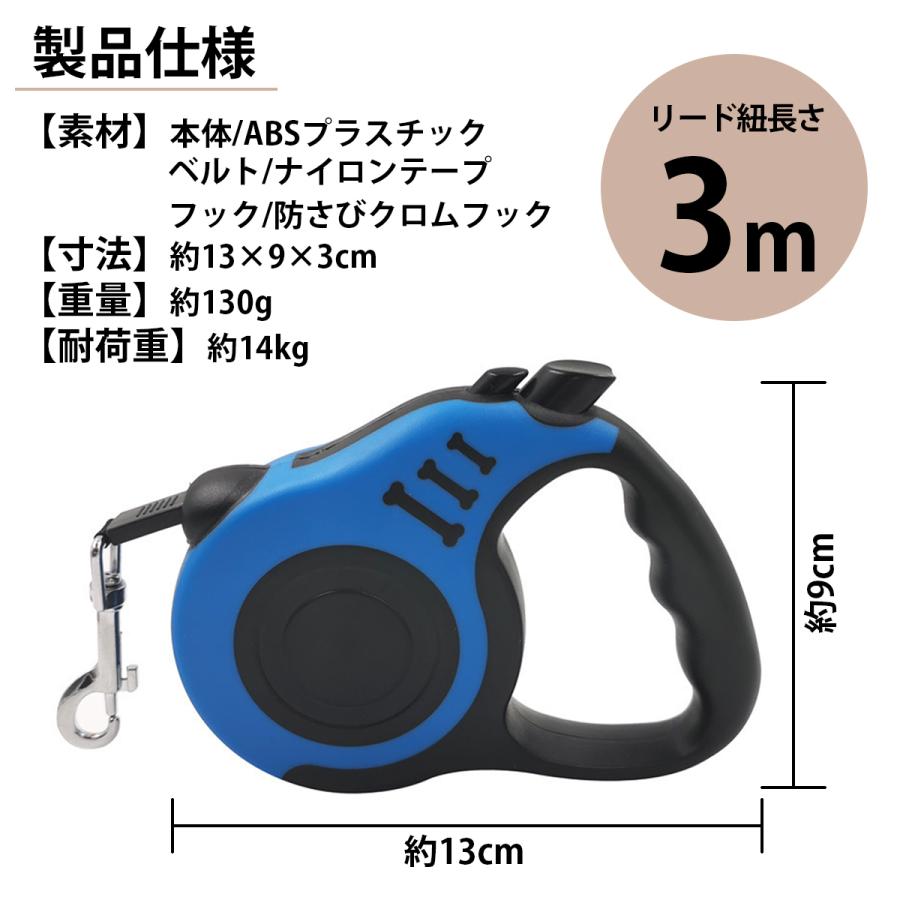 犬用リード 伸縮 自動巻き 丈夫 3m 犬 リード 小型 中型 フック付 コンパクト 長い 短い 調整可 ナイロン ワンタッチ最安値挑戦