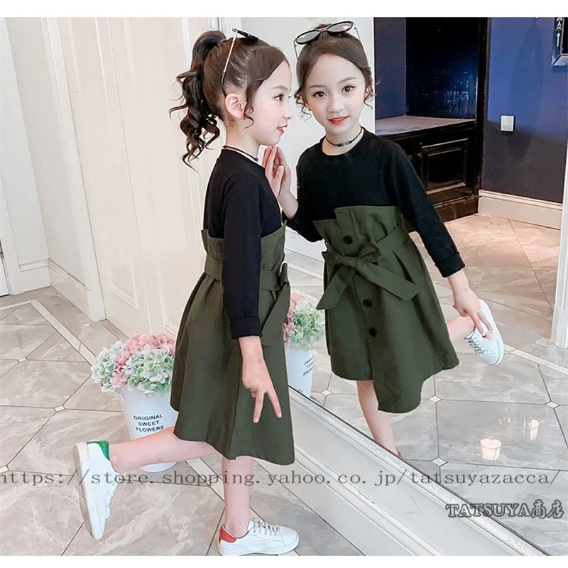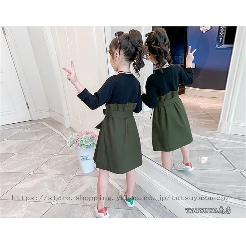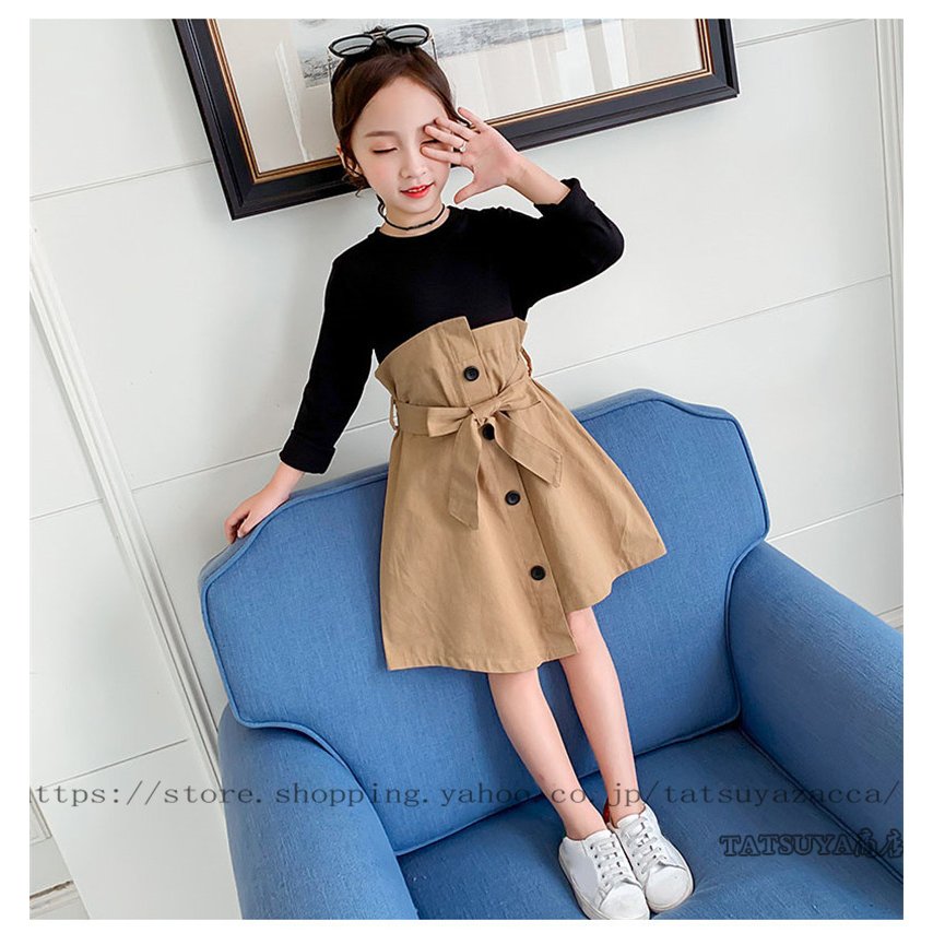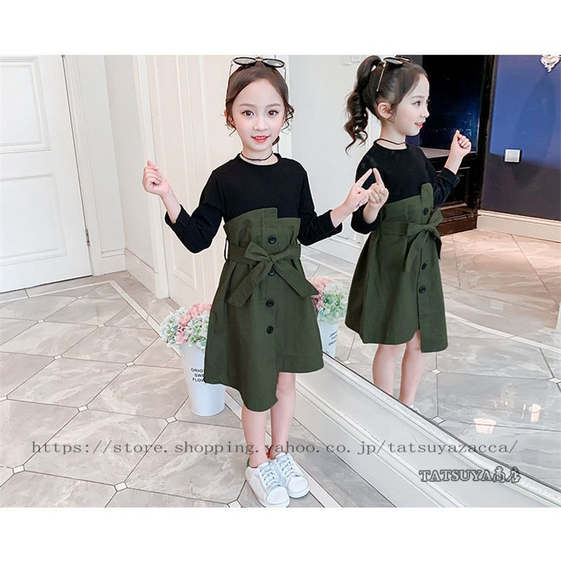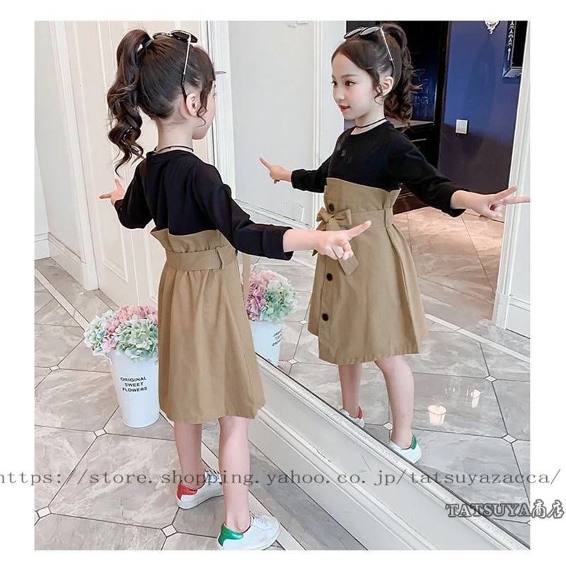 切り替え ワンピース 秋新作 膝丈 蝶結び ワンピ ドッキング 春秋 演奏会 子供服 女の子 女児 ワンピース ドレス