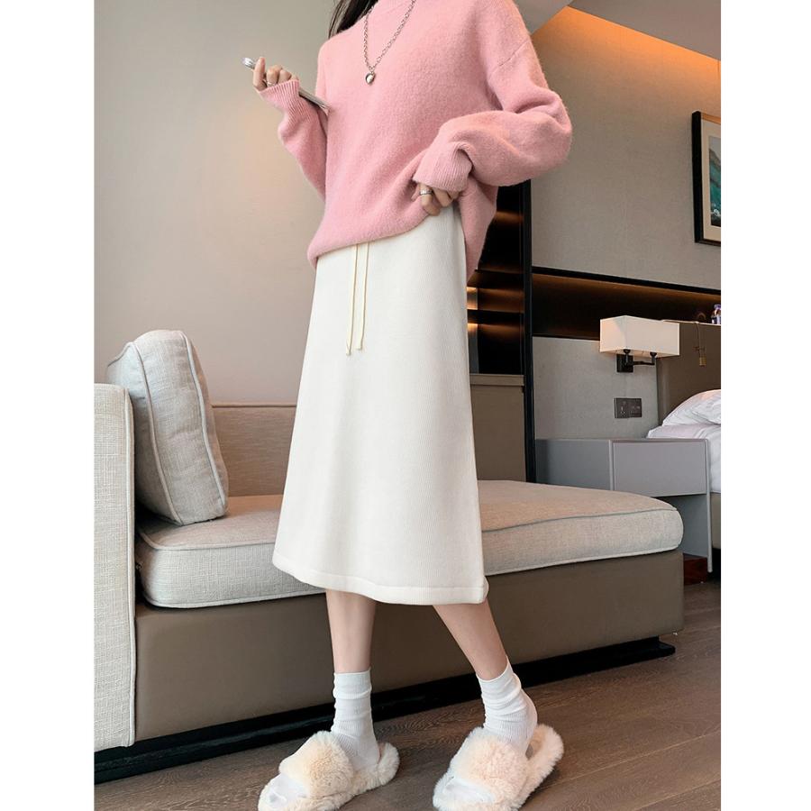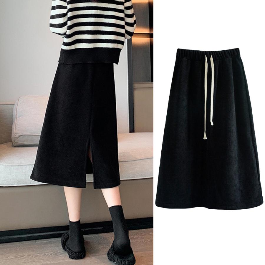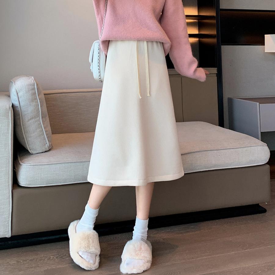 裏起毛スカート ひざ丈 ハイウエスト 冬 ロングスカート