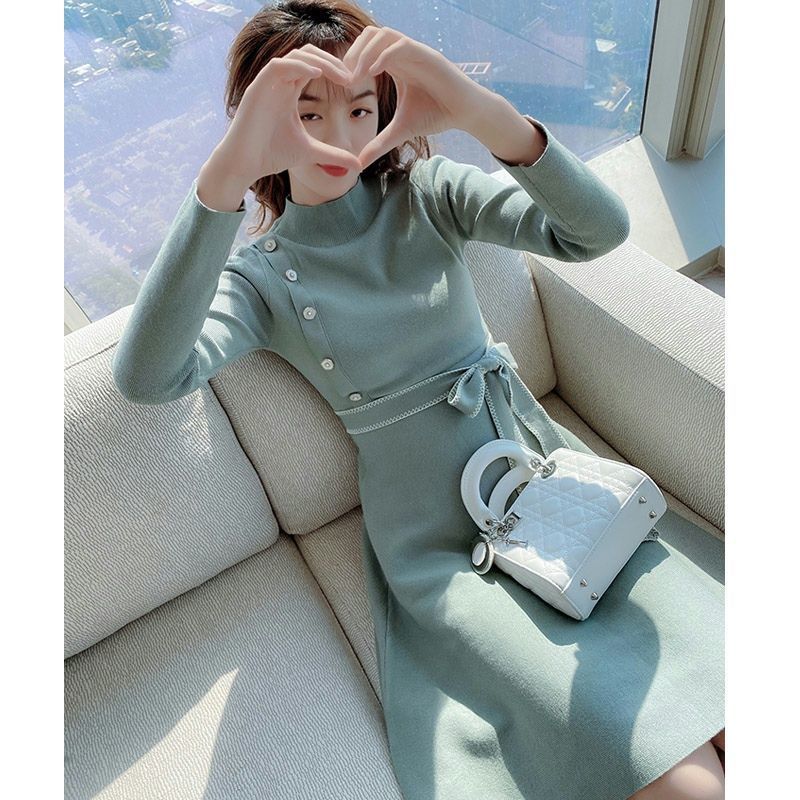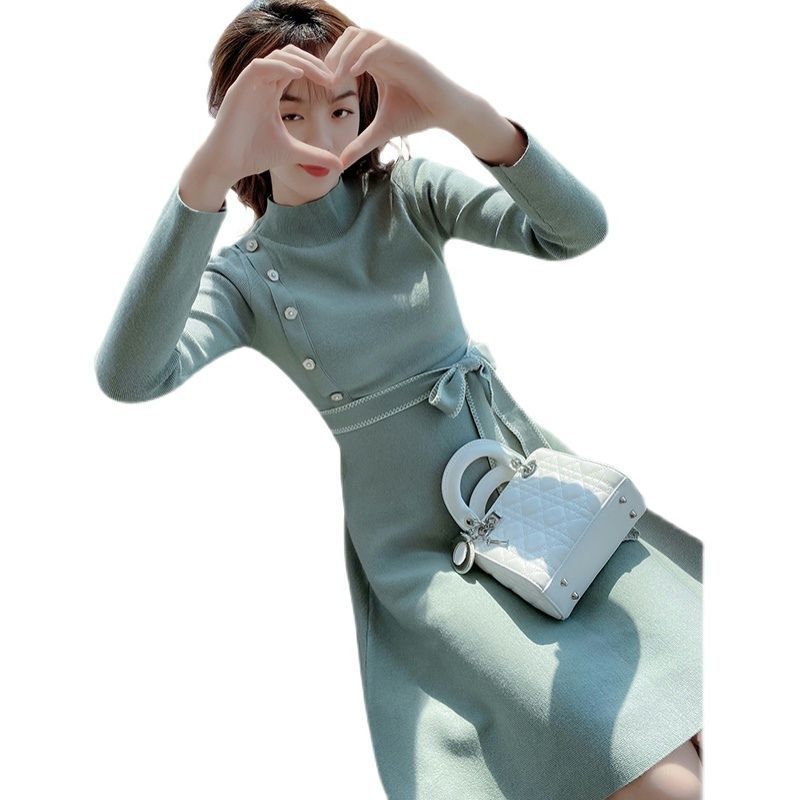 冬のワンピース フレンチヴィンテージ ニッチデザイン スリミング 着痩せ 気質 OL通勤 ニット 百掛け ワンピース 母の日 ドレス ニットワンピ