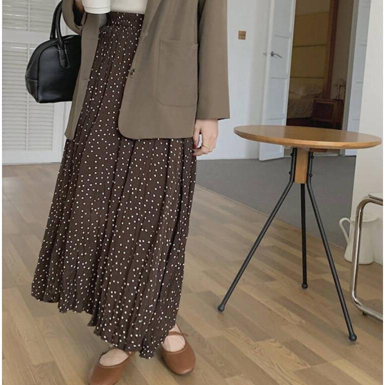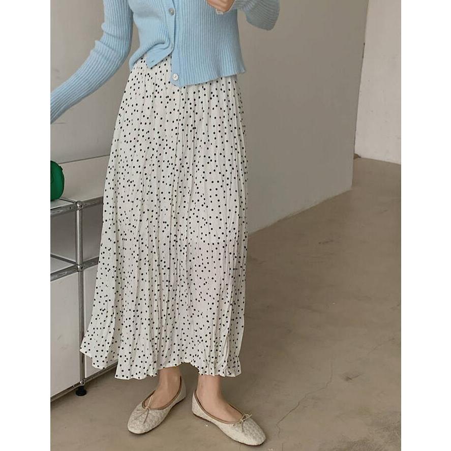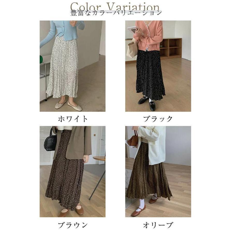 スカート レディース ロング ボトムス 春夏秋 春 夏 秋 レディーススカート フレアスカート ロング丈 ドット aライン 総柄 シワ しわ 体型カバー