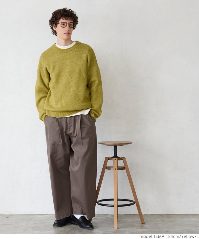 coca モヘア風クルーネックリラックスニットトップス メンズ ニット セーター