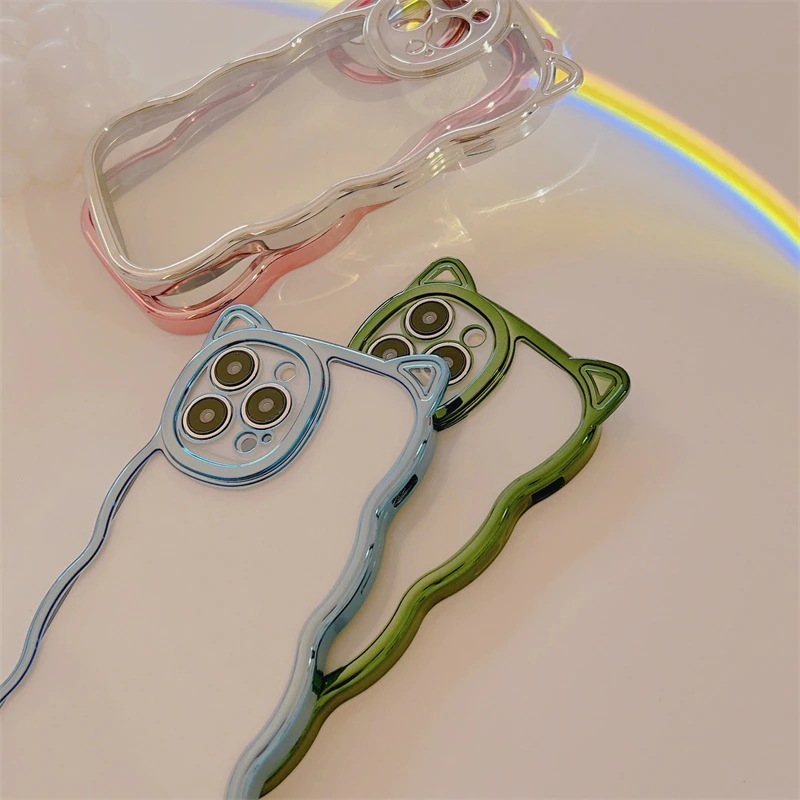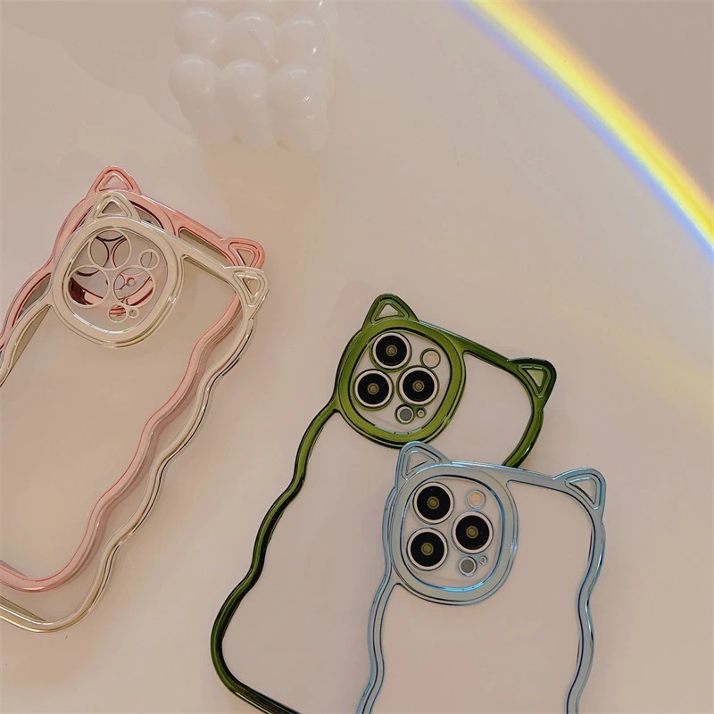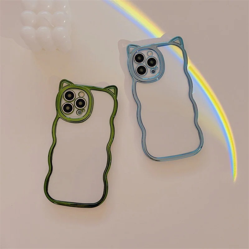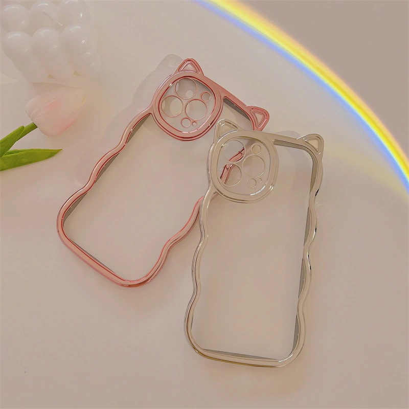 おしゃれ 高級感 スマホケース スマホケース 電解メッキ 猫耳 可愛い ウェーブiPhone14promax らかい 透明クリアiphone15 15plus 15pro 15promax
