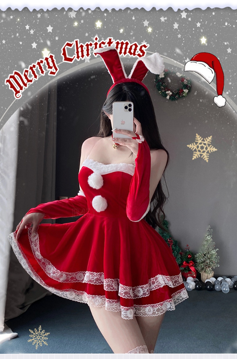 B4U サンタコスプレ クリスマス コスプレ レディース 3カラー コスチューム かわいい プレゼント モフモフ 服 冬 クリスマス
