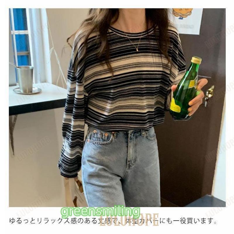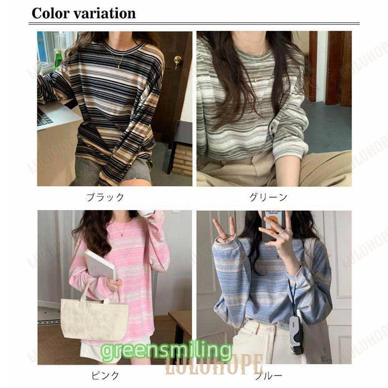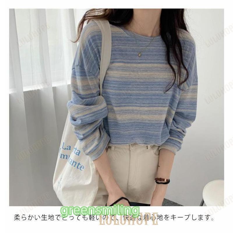 インナー Tシャツ トップス 長袖 ボーダー クルーネック 春服 普段着 可愛い カットソー カジュアル 秋服 ゆったり お洒落 レディース