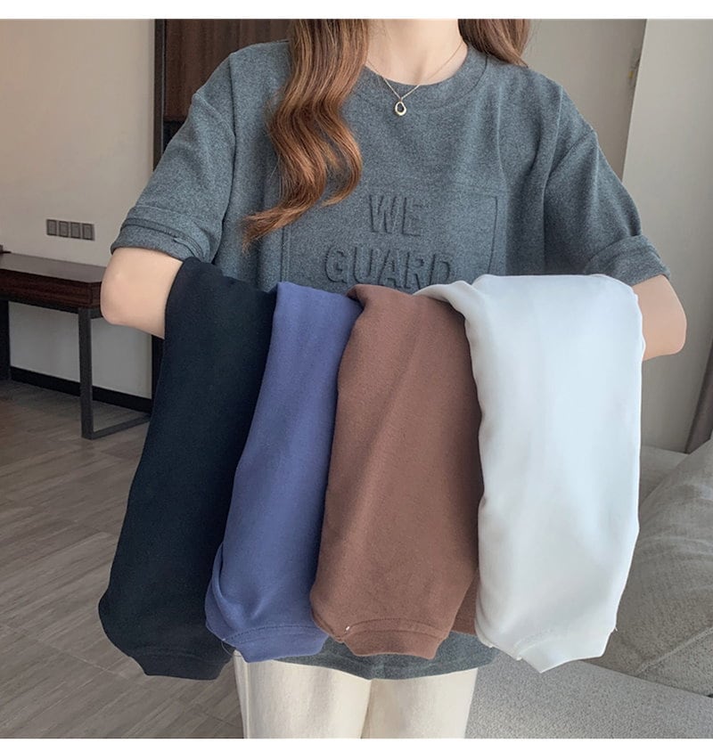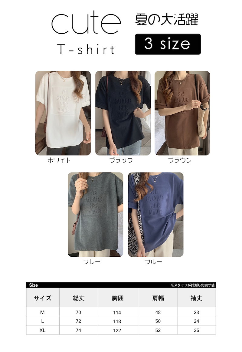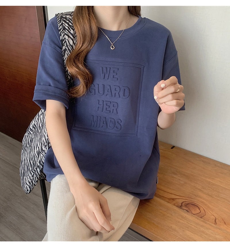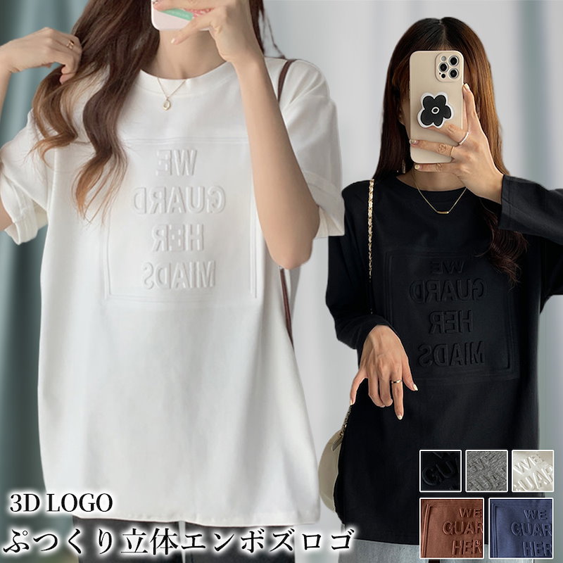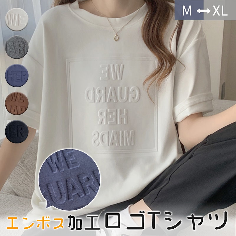 立体的なロゴが可愛い エンボス加工ロゴTシャツドロップショルダー レディース Tシャツ 半袖 袖あり 涼し気な着心地 しっかりした生地 ゆっ