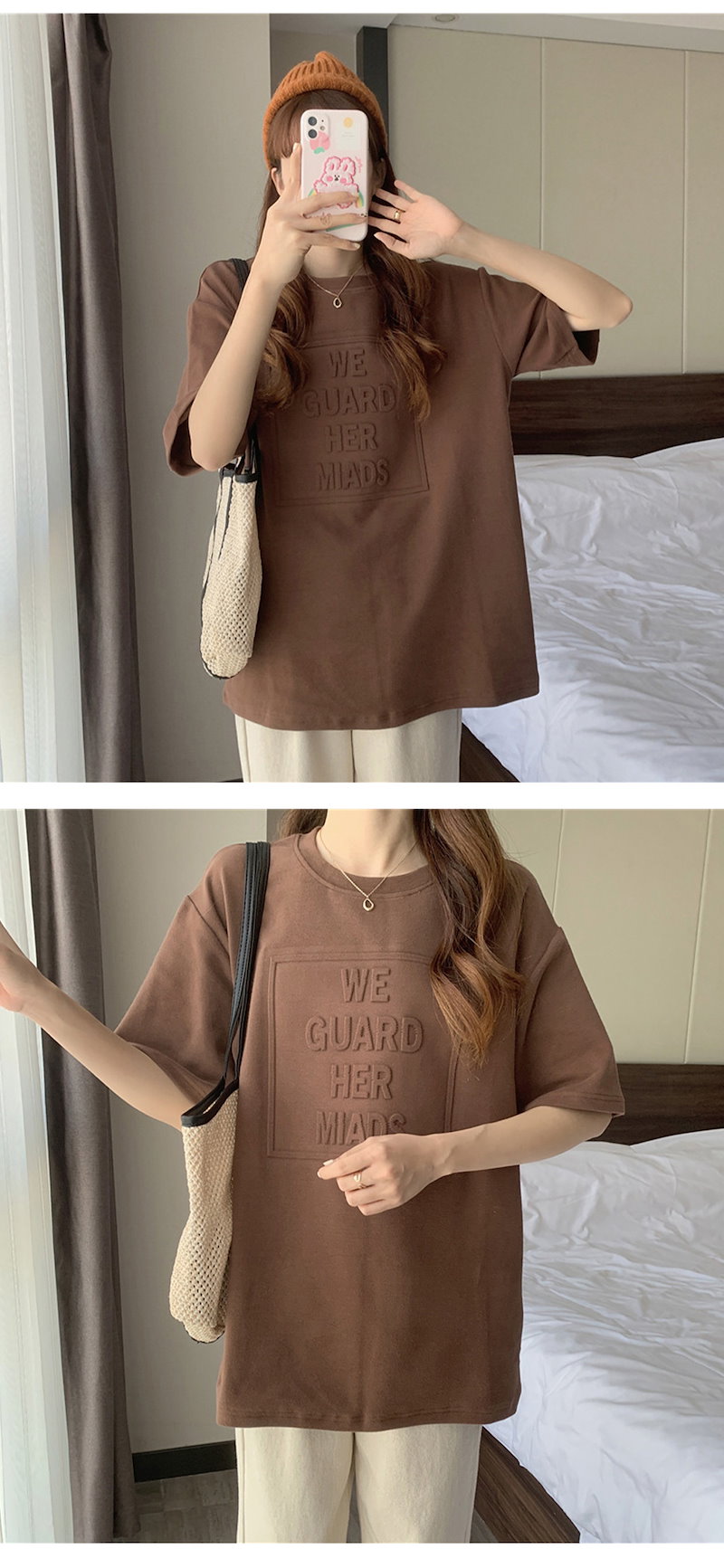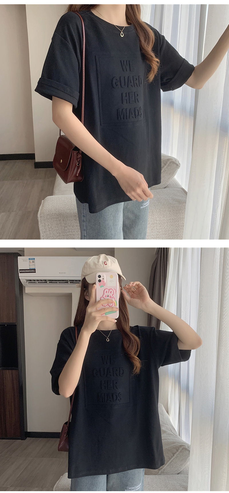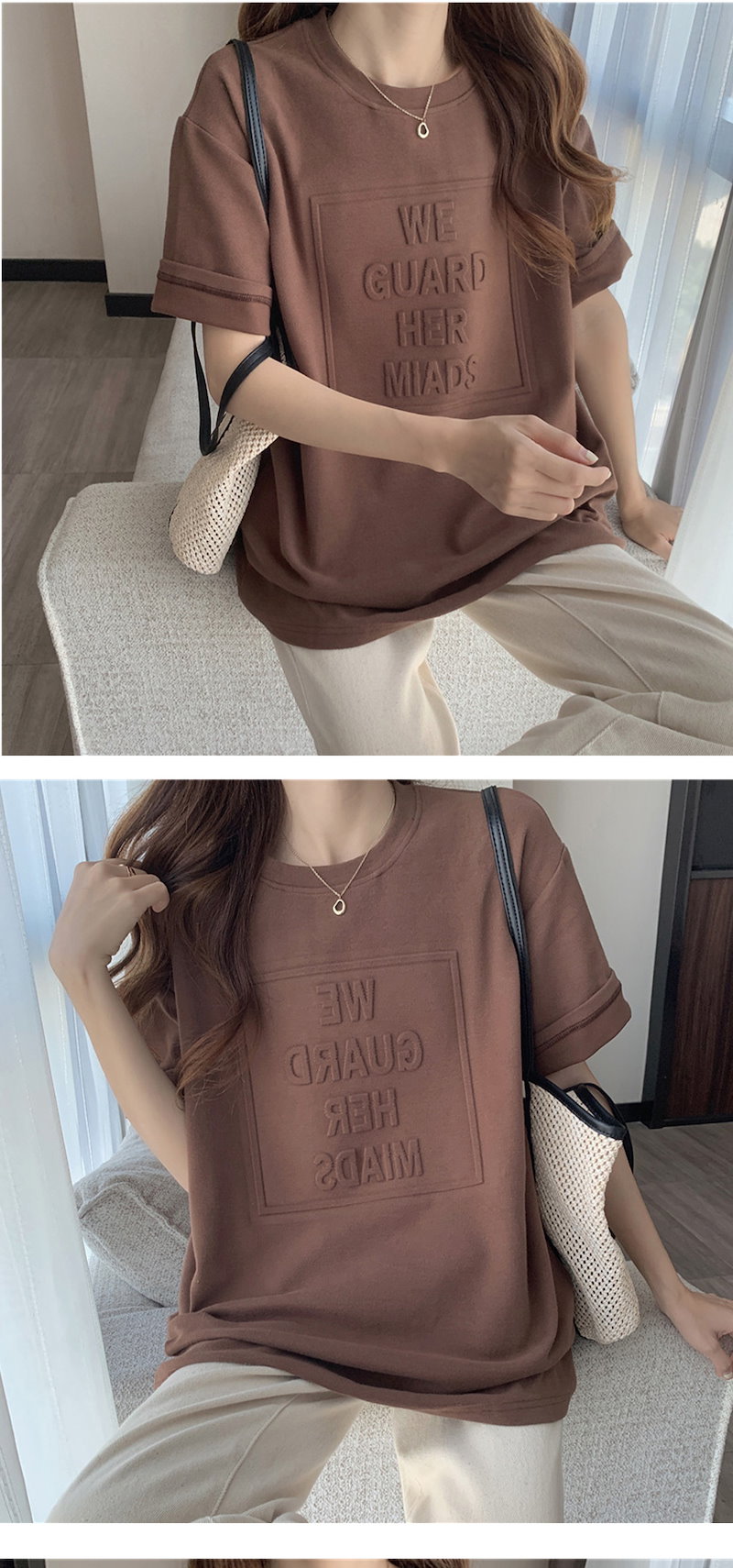 立体的なロゴが可愛い エンボス加工ロゴTシャツドロップショルダー レディース Tシャツ 半袖 袖あり 涼し気な着心地 しっかりした生地 ゆっ