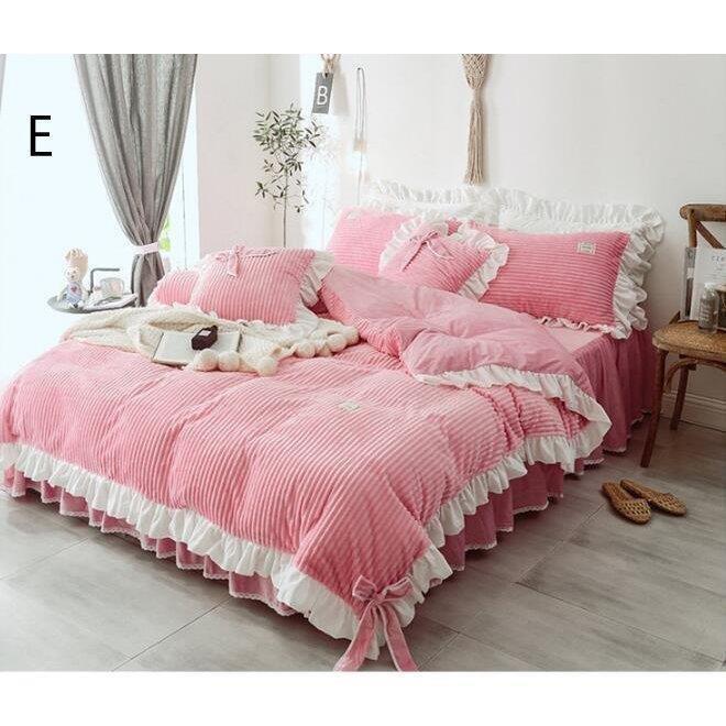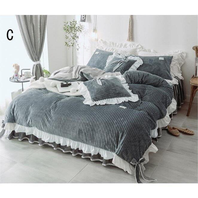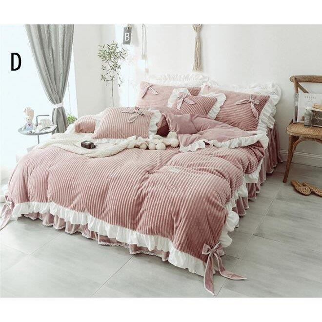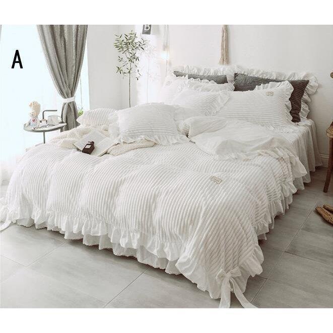 布団カバー 掛け布団カバー 姫系 ベッドスカート 秋冬 フランネル 4点セット 暖かい 新生活 寝具カバーセット ベッド用品 おしゃれ 敷き布団カバー 枕カバー