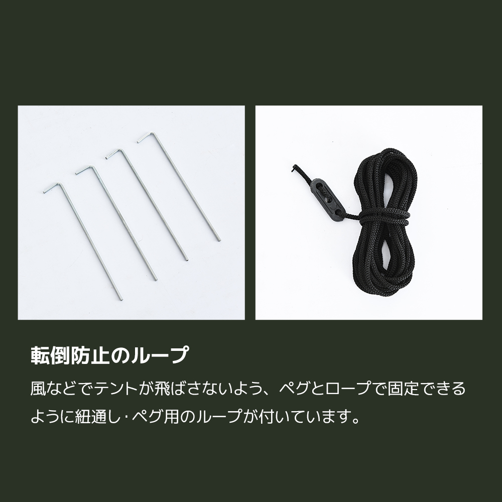 【一秒展開】袋から取り出し、パット広げてあとはペグで固定するだけて設置完了。 難しい操作などは一切ありません!誰でもカンタン、安心してお使いいただけます。