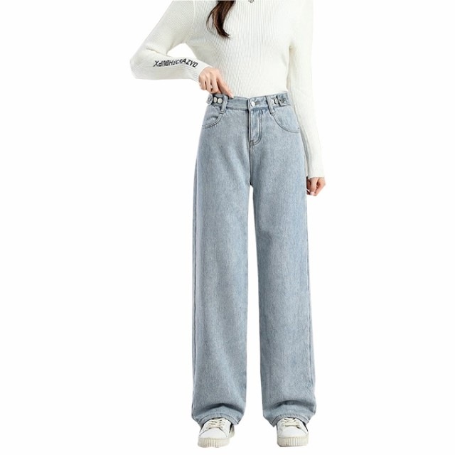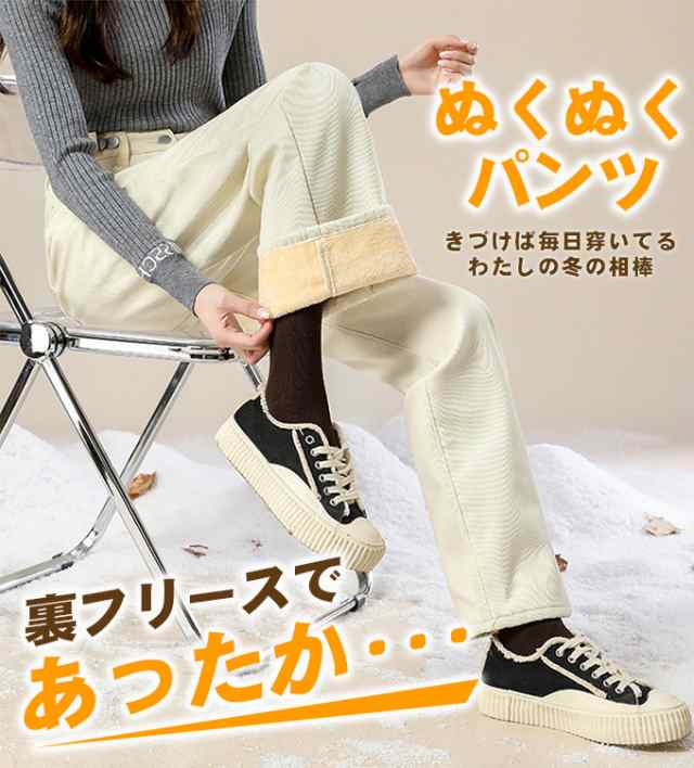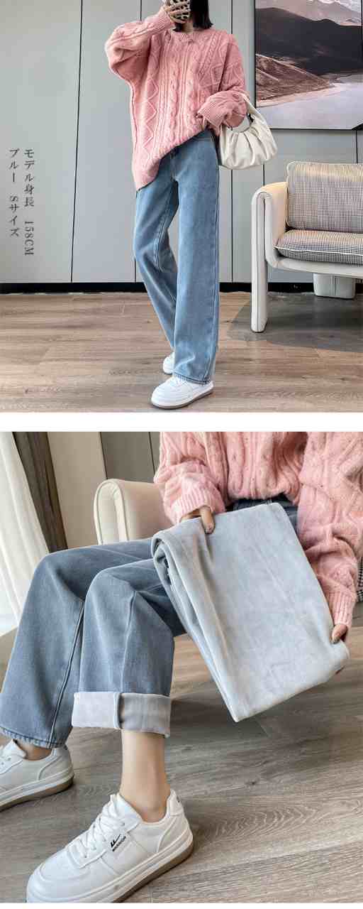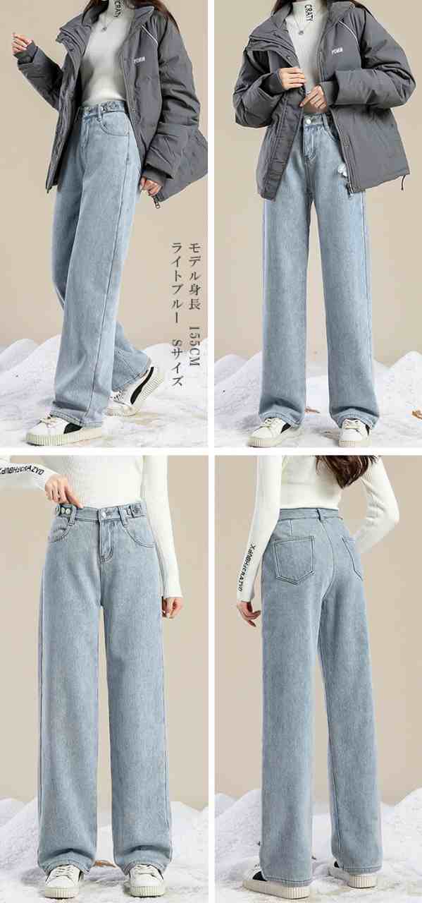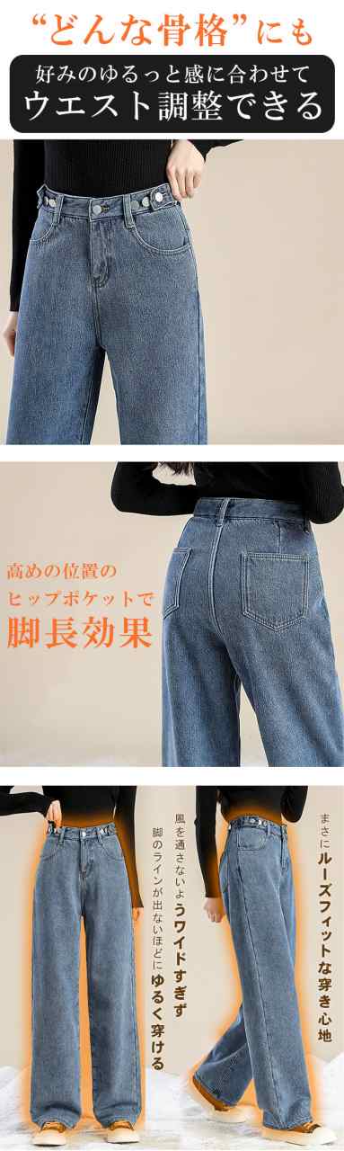 防寒 極暖裏フリース ワイドデニム 裏起毛ロングパンツ 防寒 超暖 ゆったり 通勤 ぽかぽかパンツ ぬくぬくパンツ脚長効果 レディース デニム ジーンズ