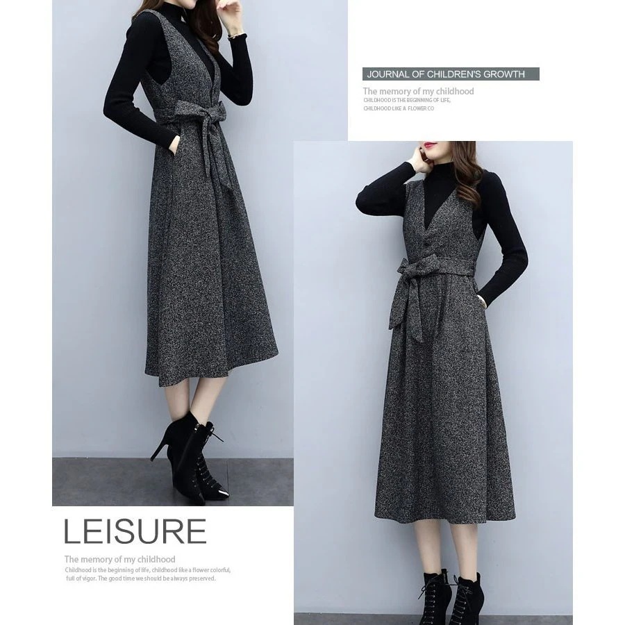 セットアップ ワンピース レディース 秋 冬 2点セット シャンパースカート 膝丈 ミモレ丈 トップ ニットワンピ